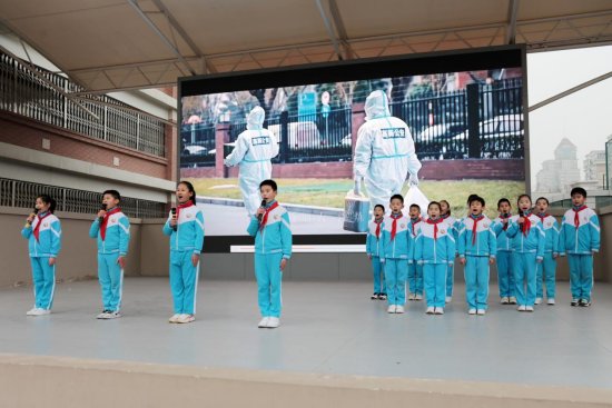 随后,四十中队的队员带来了他们的主题宣讲,以“我们”为切入点,回顾了疫情期间辛苦教学的老师、积极支持防控的同学、默默奉献的志愿者、医务工作者,以及为梦想而战的女足姑娘,冬奥开幕式团队、冬奥健儿,电影中的志愿军战士,以“我们”的精神激励鼓舞每位同学,继承和发扬自强不息的民族气概,在严格律己中茁壮成长、在顽强拼搏中砥砺意志品质、在勇敢实践中增长本领。