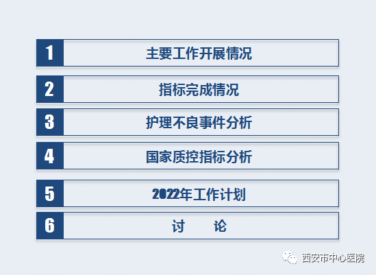 大外科护士长王敏首先对2021年主要完成的护理质控工作进行了总结汇报,接着,针对2021年各项护理指标数据结合实际情况进行分析,承上启下的提出了2022年护理质控工作重点。