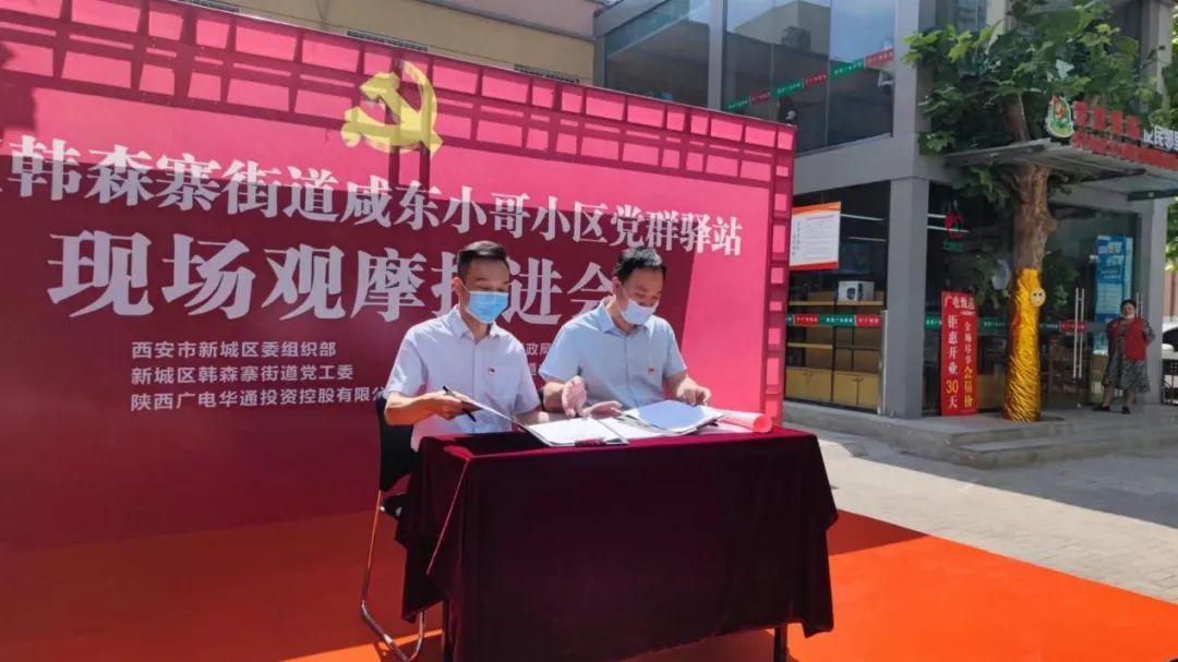 2022年6月1日上午,由陕西广电华通投资控股有限公司、西安市新城区委组织部、西安市新城区民政局、新城区韩森寨街道党工委、新城区韩森寨街道办事处共同承办的韩森寨街道咸东小哥小区党群驿站现场观摩推进会在东方社区举行。
