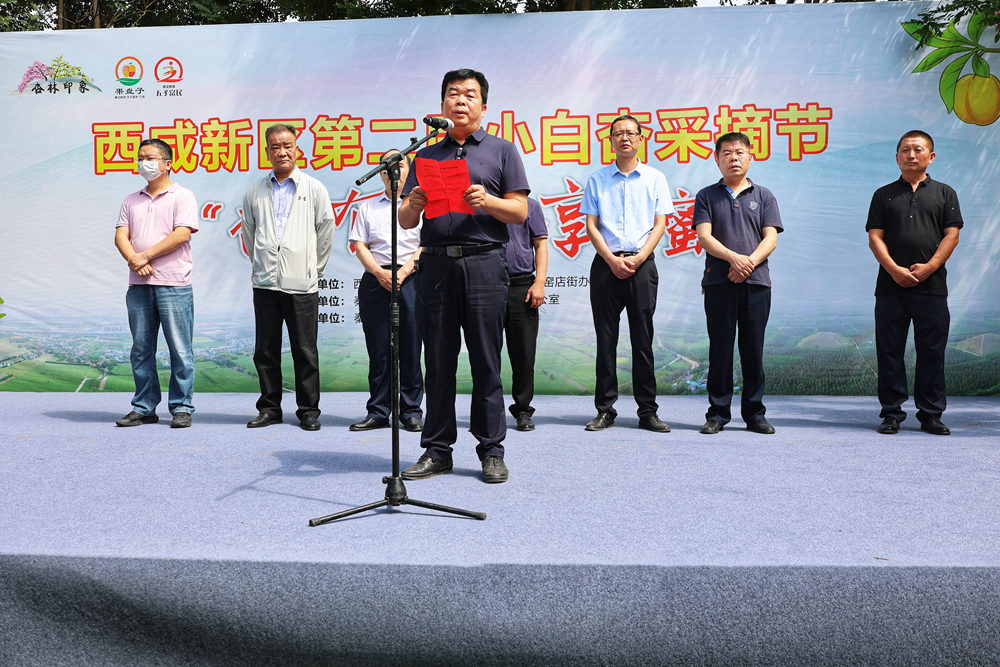 上午10时许,活动在曼妙的古典音乐演奏声中开始。秦汉新城窑店街道办事处主任刘海洋在致辞中表示,近年来,街办紧抓乡村振兴发展机遇,以农业发展、农民增收为目标,通过“创新链、生产链”双链融合,打造了葡萄、食用菌、小白杏、设施蔬菜等特色农业产业,形成了美丽乡村旅游、采摘观光等特色旅游产业,推动了辖区集体经济高效发展。在街办的支持下,大农合作社自2016年引进栽种新疆小白杏60亩,亩产量达到2000斤,总产值达到180万元,累计带动当地农户80余人就业。街办会继续引进新品种、新技术,创新种植模式,多渠道争取资金和技术支持,引导教育辖区农户培育“新优特”品种,努力将窑店街道打造成西咸特色农业产业的一张靓丽名片。
