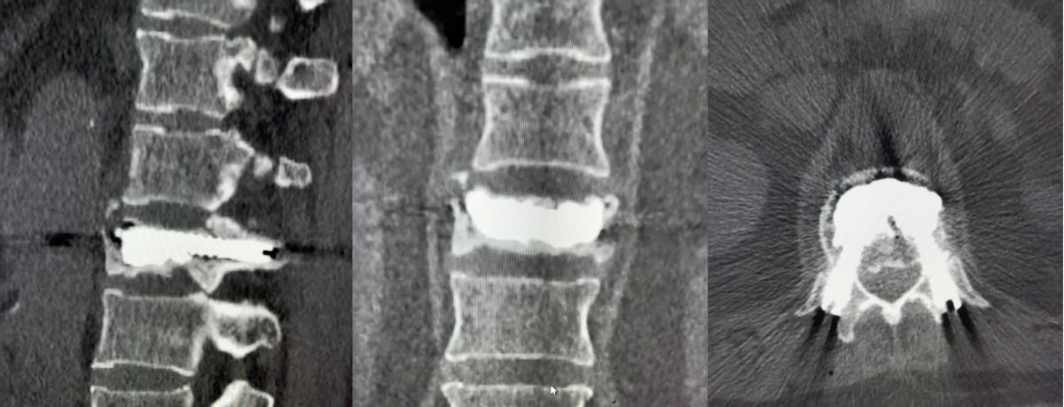 在郝定均院长及孙宏慧主任的指导下,王彪副主任医师团队采用了双枚骨水泥桥接螺钉系统完成了骨折治疗,缓解了患者疼痛及活动不便,手术圆满完成。术后,患者腰背部疼痛的症状完全消失,术后第二天便在腰背部支具保护下逐渐开始功能锻炼,恢复良好。