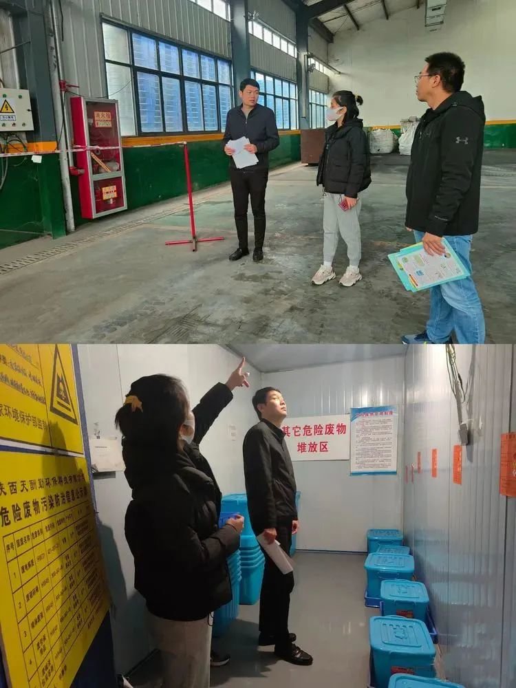 在该企业废旧蓄电池贮存场所、酸液收集池,执法人员重点查看地面是否存在环氧树脂漆面破损、裂缝等问题,要求进一步完善地面防渗措施,确保按规定设置标识标牌、按规范记录工作台账、落实到位安全措施、定期自查应急设施运行情况,按要求进行土壤环境监测并上传监测数据,有效防控环境风险。