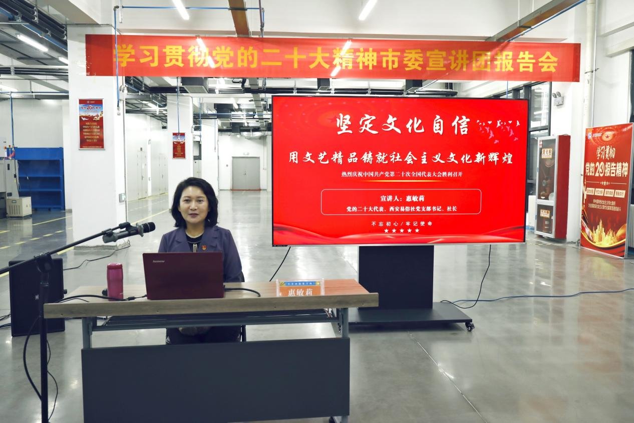报告会上,惠敏莉重点围绕“坚定文化自信,用文艺精品铸就社会主义文化新辉煌”向企业党员干部、职工代表传达党的二十大精神,分享学习心得,交流参会感受。报告中,惠敏莉将“大理论”和“小故事”相结合,并在讲述中穿插了图片、视频等,用生动的事例、精彩的秦腔作品,真正让党的二十大精神深入人心。报告会结束后,大家纷纷表示宣讲报告主题鲜明、内容丰富、形式新颖、见解独到,为深入学习领会和宣传贯彻党的二十大精神提供了指导。