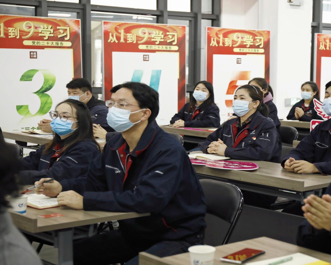 “神州大地凯歌扬,二十大精神闪金光……”11月21日,在中航富士达科技股份有限公司的车间里,党的二十大代表、市委宣讲团成员、西安易俗社有限公司党支部书记、执行董事、总经理惠敏莉带着满满的收获向职工们传递党的“好声音 ”。