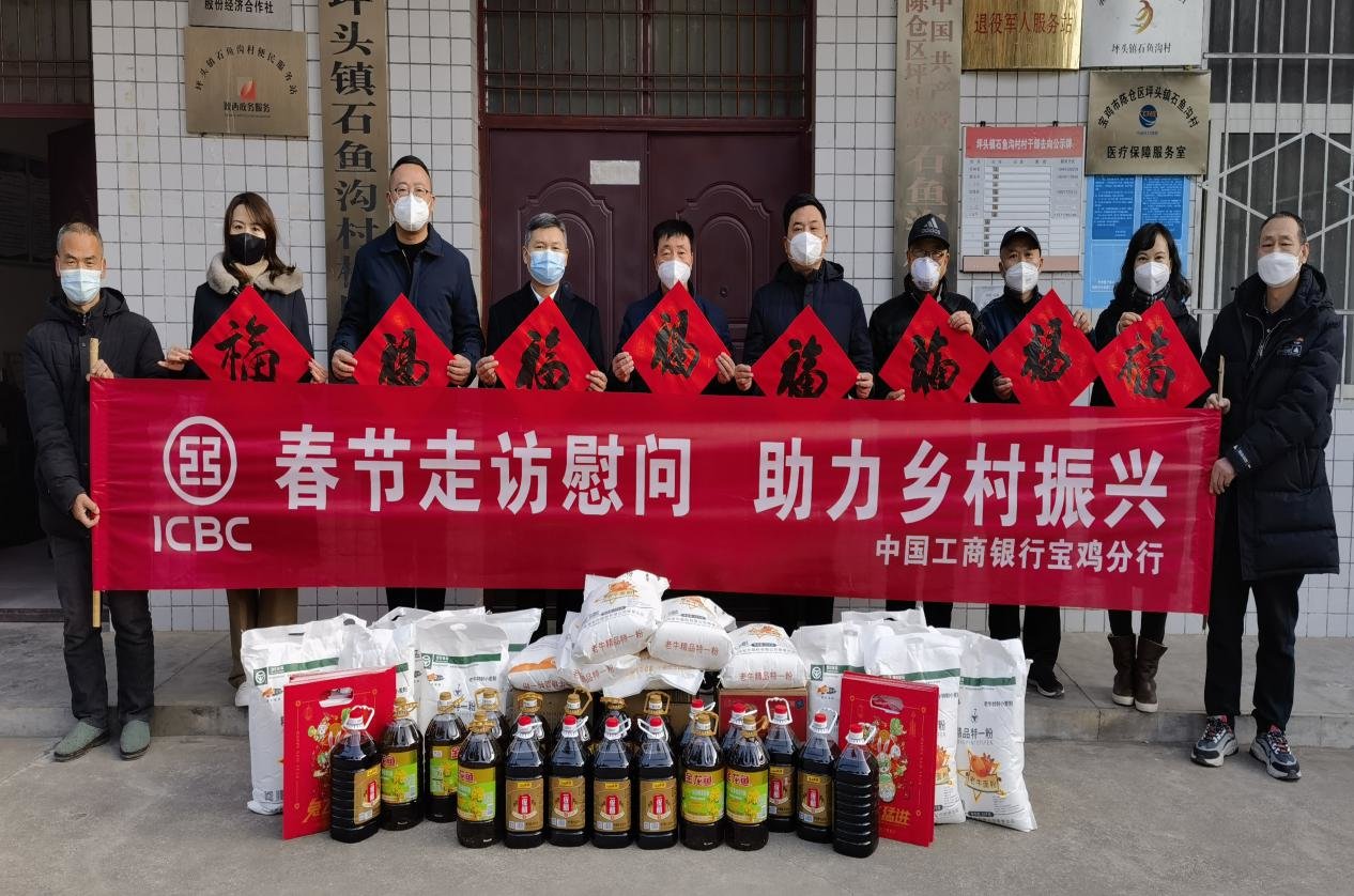 为全面贯彻落实党的二十大精神,推动巩固拓展脱贫攻坚成果同乡村振兴有效衔接工作上台阶、见实效,2023年1月18日,工行宝鸡分行赴陈仓区坪头镇石鱼沟村开展“春节走访慰问 助力乡村振兴”活动。