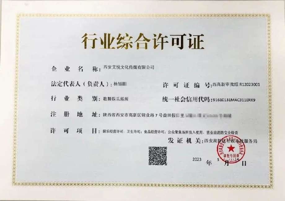3月16日上午,在西安高新区综合服务大厅内,高新区行政审批服务局向西安艾悦文化传媒有限公司核发了编号为001号的《行业综合许可证》。这是西安市发出的首张歌舞娱乐场所《行业综合许可证》,标志着“一业一证”改革取得新的突破。