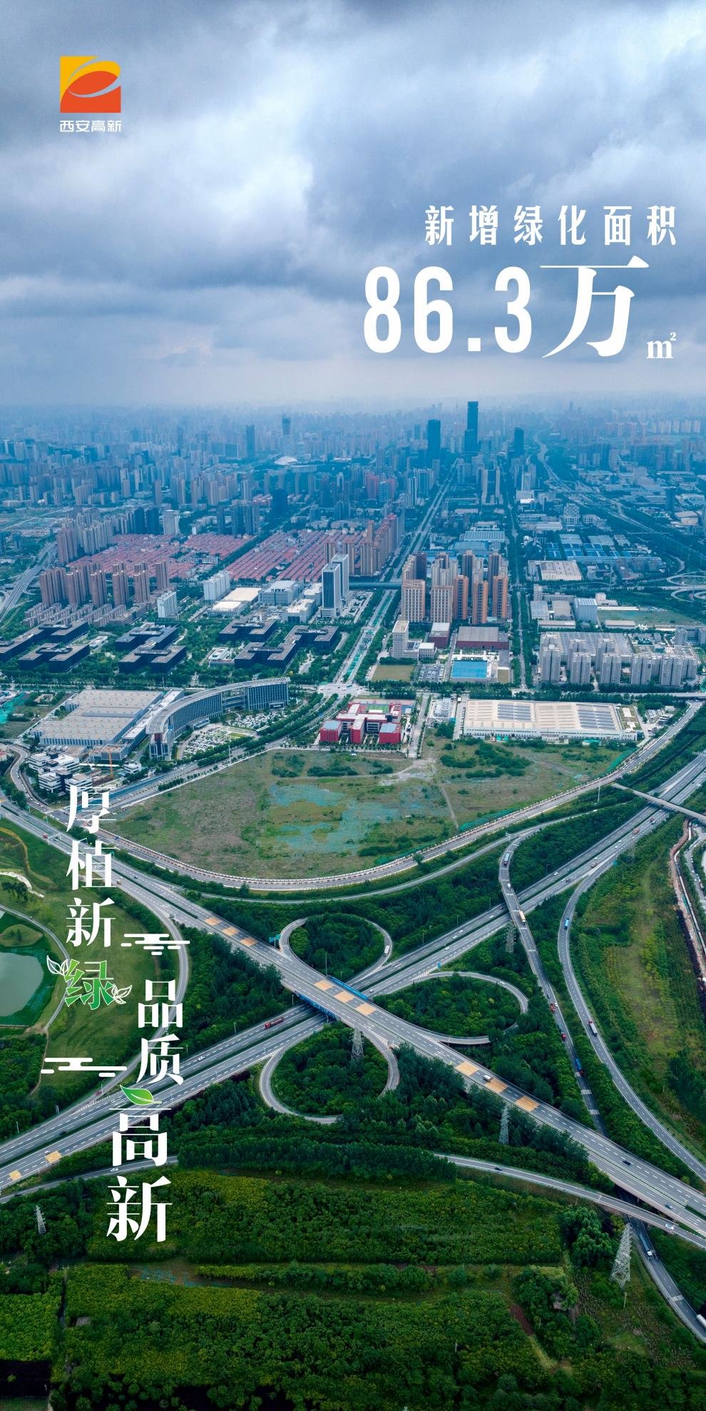 2022年,西安高新区新建及改造提升城市公园5座、口袋公园30座,新增绿化面积86.3万㎡,实现三分钟见绿、五分钟进园。
