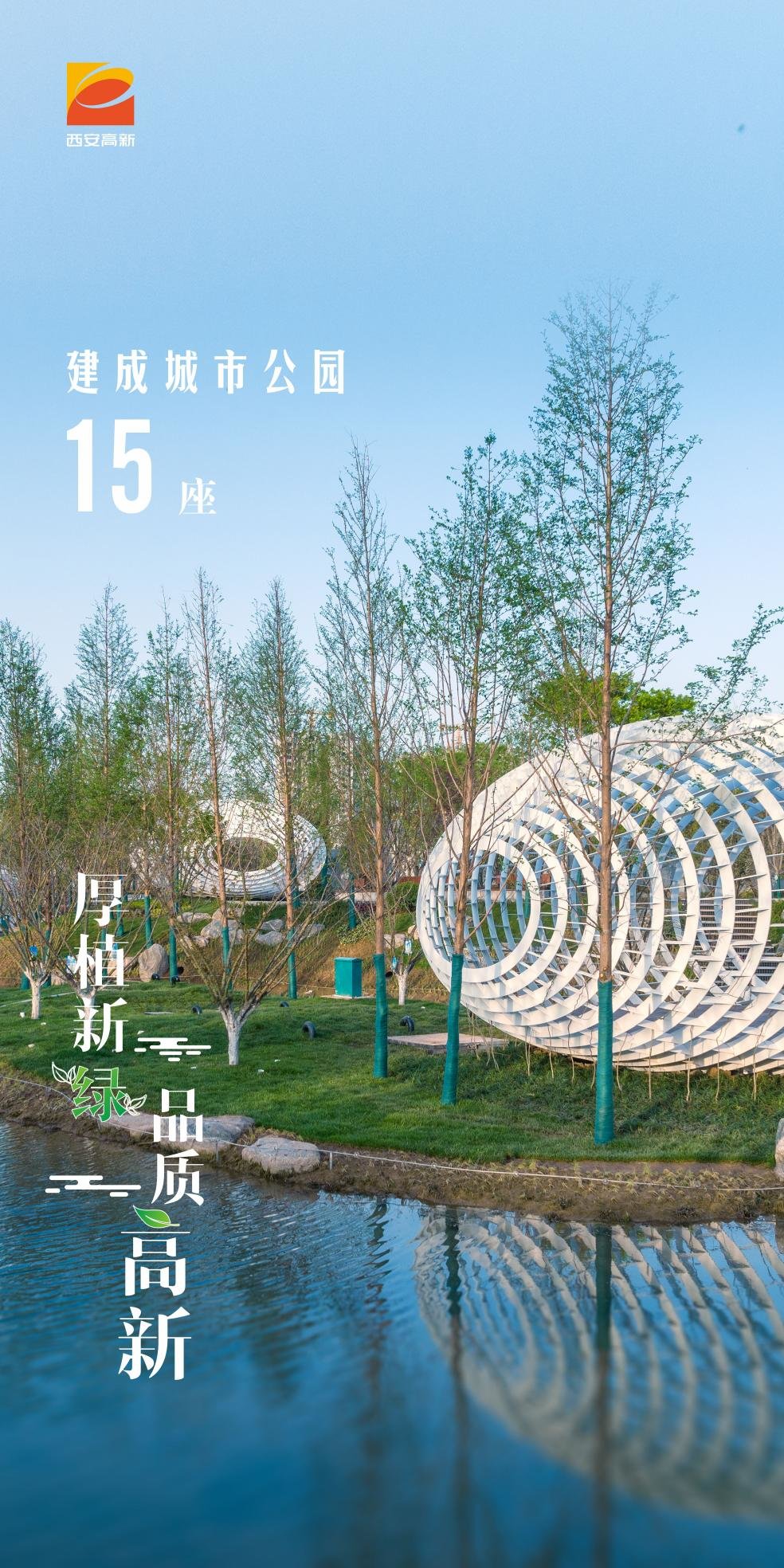 目前,西安高新区已建成永安渠海绵城市公园、唐城墙遗址公园、永阳公园等15个城市公园,为生活在城市的居民在家门口就能找到“诗和远方”。