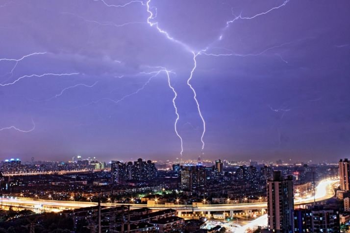 2、遇雷时,要在屋顶下方稍有空间的房屋躲避,如附近没有躲避场所,应蹲下两脚合拢,尽可能站在不吸湿的材料上,不要站在高大的单独树木下,避免靠近或接触高处的金属物体,如井架、栏杆、避雷引下线等。