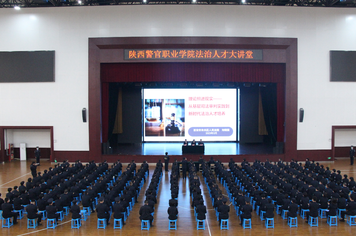 3月22日下午,未央法院速裁审判庭负责人韩霞、副庭长刘晓国一行,走进陕西警官职业学院,开展“理论照进现实——从基层司法审判实践到新时代法治人才培养”专题活动,以鲜活具体的司法案例传递法治正能量,以推心置腹的座谈交流共商基层法律人才培养路径,助燃青年学子的“法治梦想”。陕西警官职业学院法律系主任李韬主持活动,1200余名师生参加。