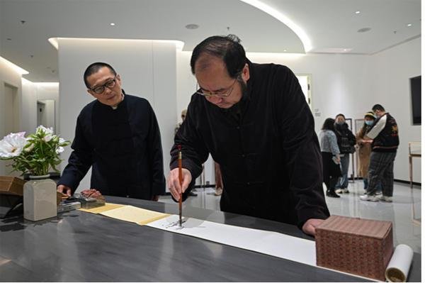 文明而止。活动的重要议程“唐人法度”书法艺术学术研讨会,会议由中国美术家协会国家重大题材艺委会委员,西安美术学院吕书峰教授主持,特别邀请了国内著名专家教授参加,包括西安交通大学人文学院中国书法系主任,博士生导师薛养贤教授;陕西省书法家协会理事,骊山印社社长董扬先生;西北大学艺术学院院长郭琳教授;黄土画派艺术研究院秘书长,西安美术学院刘丹教授;西北大学中国画研究院院长邓益民教授;著名画家江文湛先生入室弟子,花鸟画画家惠敏先生;黄土画派艺术研究院办公室主任程东富先生;中国首位书法与中国画双博士、西北地区首位书法博士,西安美院书法系贺文荣教授等专家学者,各位专家导师给予谭元豪老师的书法实践一致肯定,认为不仅传承了唐人帖学书法的正脉,而且在个人修为的心性书写上有所发展。专家们更对谭元豪老师专注敦煌写卷中唐人书风的学术探究寄托了更大的期望。