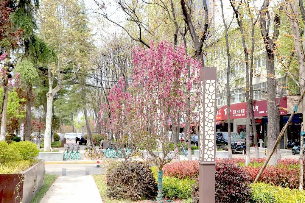 海棠、樱花竞相开放,低垂的树枝吐出新芽,好一派春日景象。在枣园西路与汉城南路十字西南角的另一处“口袋公园”,也就是厨具市场的东面,这个占地面积约2200平方米的公园内,同样绘就着一幅秀美的迷人画卷。在公园提升改造过程中,莲湖区遵循科学、节俭、便民的改造思路,在原有乔木位置新建了树池坐凳,增设了健身步道,栽植了红叶石楠、金森女贞、麦冬等地被,使这个曾经的城市“边角料”摇身一变,成了市民的“锦绣园”。早晨或是晚饭后,附近居民都会来这里散步聊天。
