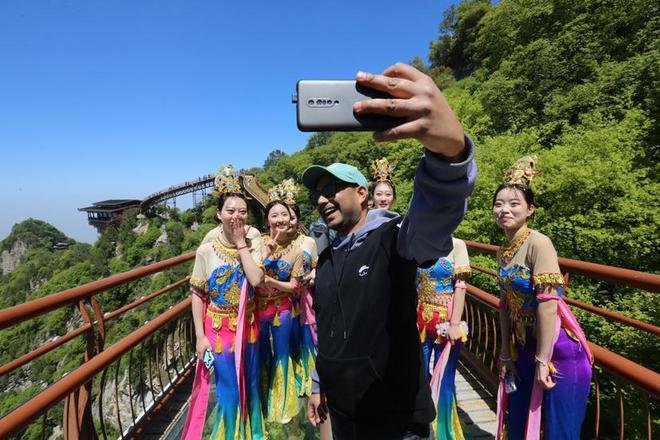 五一”假期的少华山可谓“仙侠味儿”十足,景区精心策划推出以“仙侠情缘 舞乐少华”为主题的少华山第二届华服礼乐会,来这里的游客不仅可以感受浓浓的国风古韵,免费体验凝结时空的“子弹时间”,还可以在藏龙云海广场享受一场唯美的视觉盛宴——经典舞蹈《踏歌》、《只此青绿》、《飞天琵琶》、《唐宫夜宴》在山水间上演。