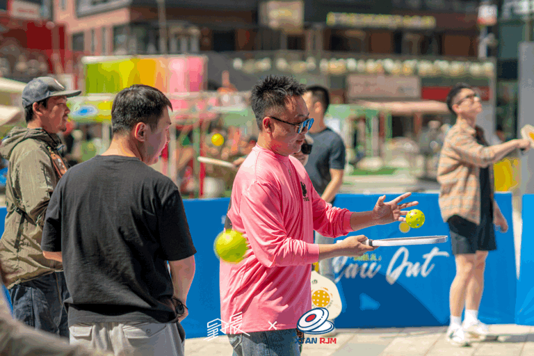 “往前走一点、使点打过去……”在量子晨水塔广场,头号玩家匹克球挑战赛正在激烈的进行,吸引了不少年轻人围观。