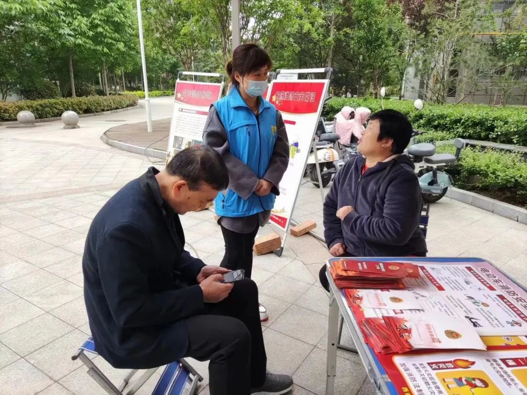 5月5日下午,高陵区崇皇街道泾渭观澜社区的工作人员将办公桌“移动”到龙江国际城小区内,通过现场办公把服务触角延伸到了群众家门口,他们一出现便吸引了不少居民前来咨询,工作人员一边解答,一边忙着在本子上登记信息。