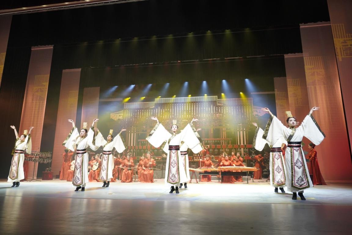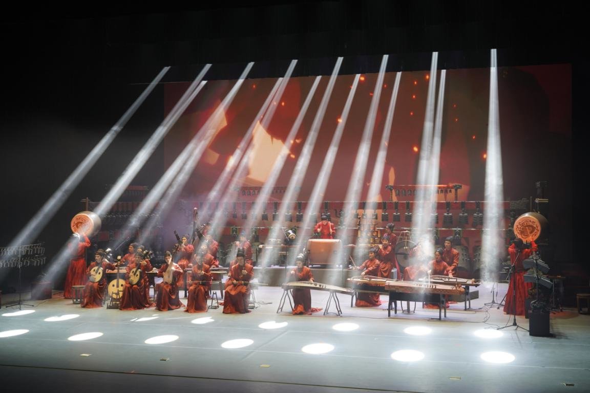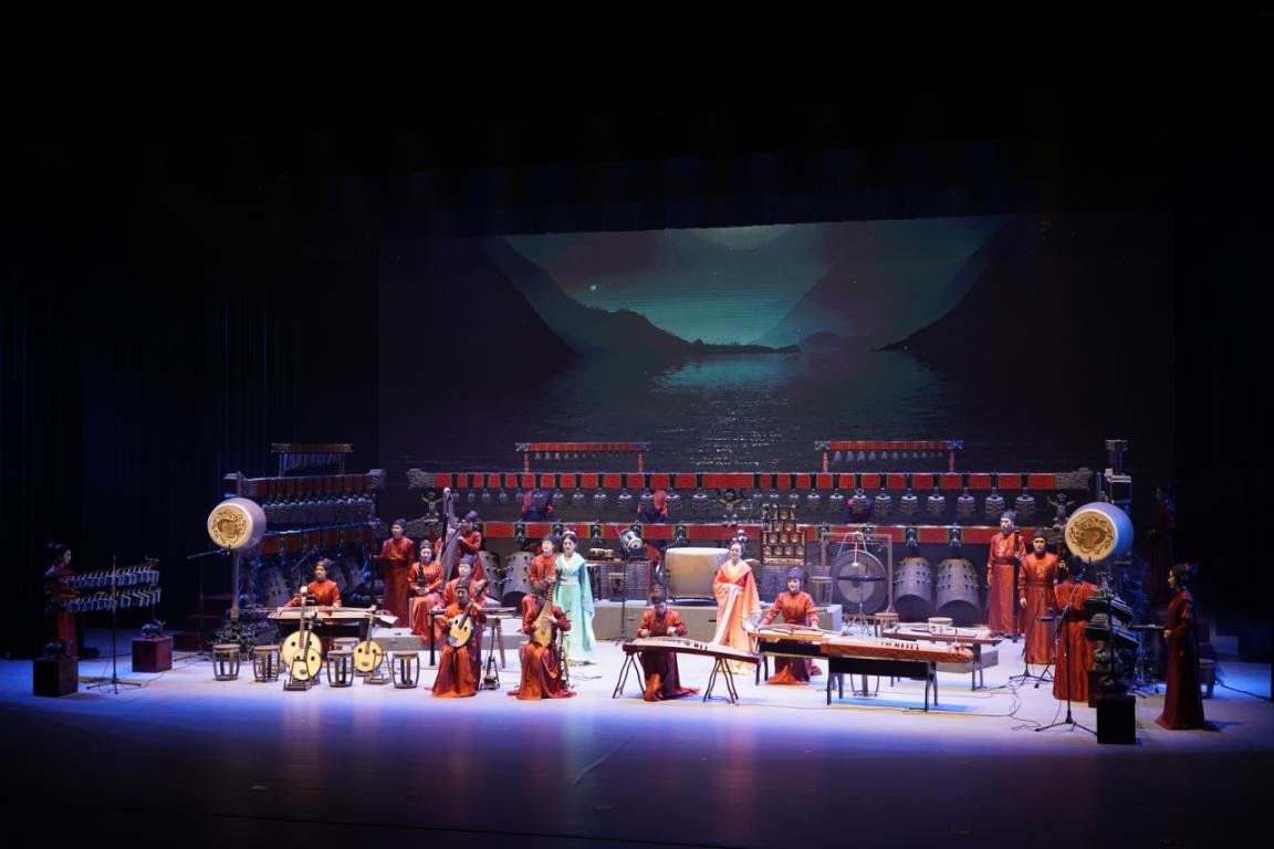 《大唐雅韵·钟鸣鼓乐》音乐会是乐团对传统音乐文化守正创新的代表作品,既体现出大唐雅乐盛世风貌,又释放出当代音乐表演艺术魅力。庄重的编钟曲《朝乐》拉开了音乐会的序幕,“体道前贤,礼乐为先”身临其境;西安鼓乐《靛花开》传递俗派鼓乐社的音韵;编钟曲《春江花月夜》展示“孤篇盖全唐”的气势;器乐合唱曲《万世太平》是黄藤作词作曲,创作于北宋思想大家张载先生诞辰千年之际的传统古风音乐作品,礼赞华夏儿女传承文脉、仁心天下的气度与精神。