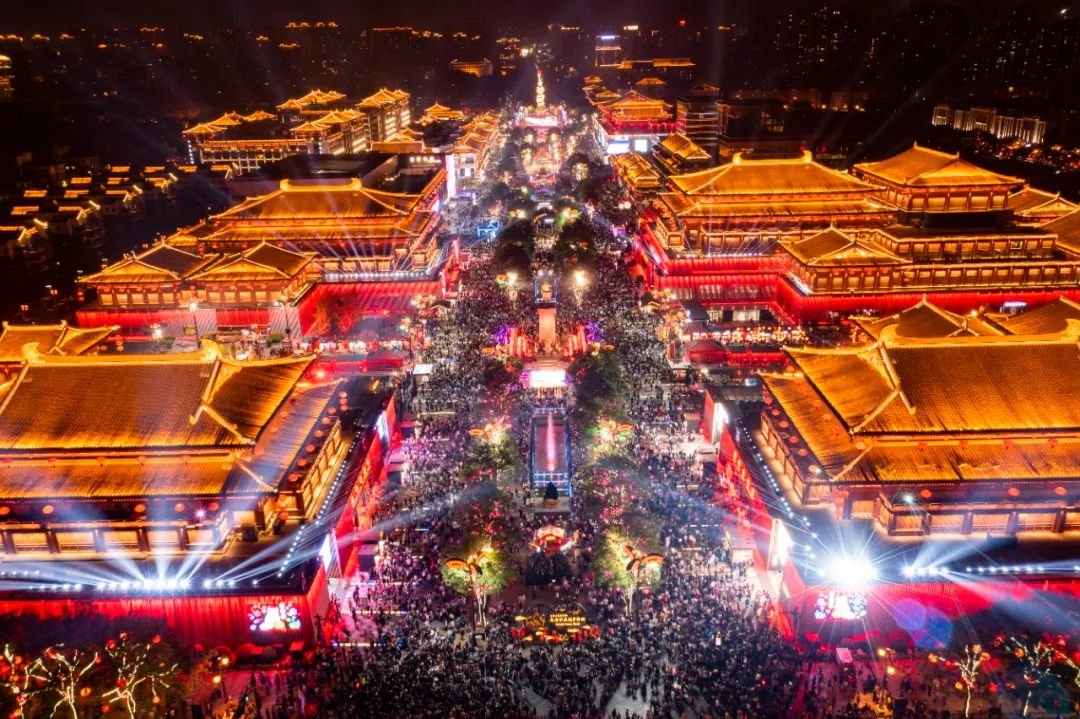 最为突出的是业态融合与创新,“文化+演艺”打造出多个全网爆火的IP节目;“文化+节庆”策划了西安年、上巳节、曲江花月宴、新春大潮会等多个精彩节庆活动,丰富游客游览体验;“文化+科技”携手北京河图在大唐不夜城上新AR导览体验项目“盛唐幻境”;“文化+餐饮”在旗下餐饮品牌还原盛唐古典美食……