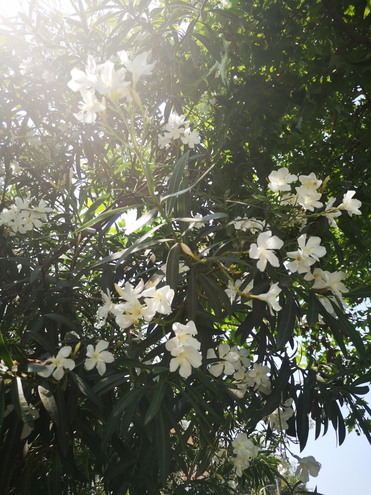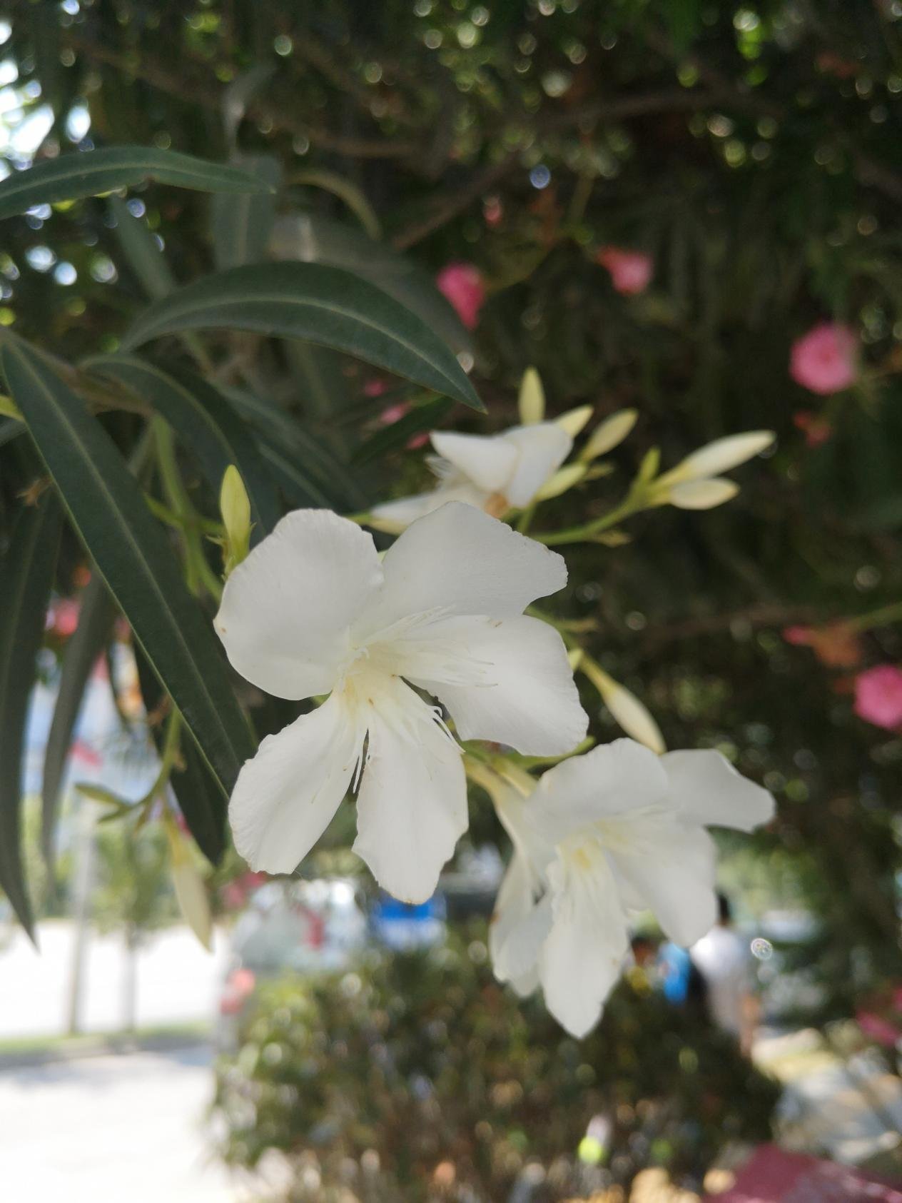 据了解,夹竹桃属常绿直立大灌木,因为花似桃、茎似竹,因此得名夹竹桃。西安高新区的夹竹桃有单瓣的也有重瓣的,白色的为单瓣,玫红色的为重瓣,花期可从5月开到10月。