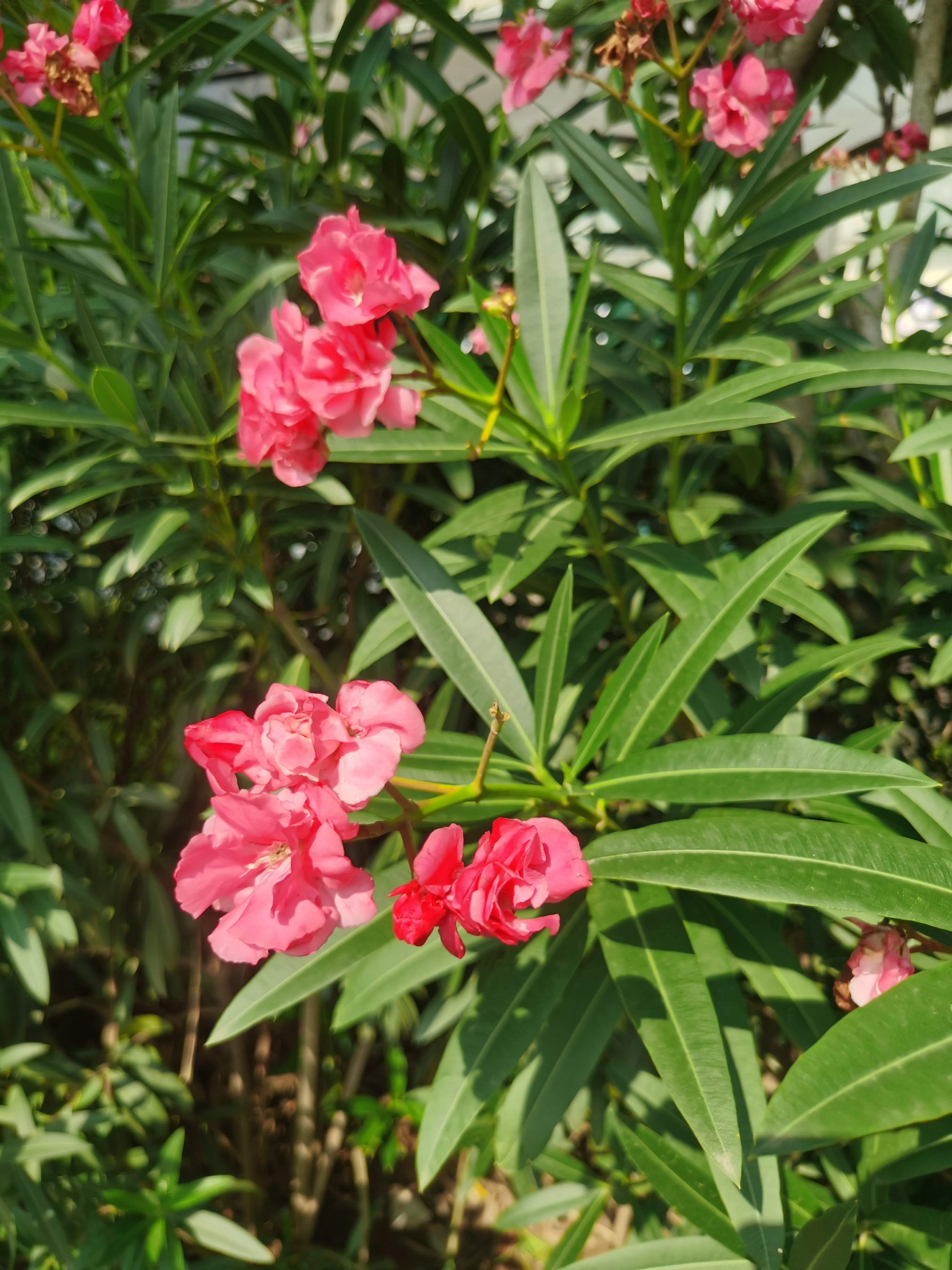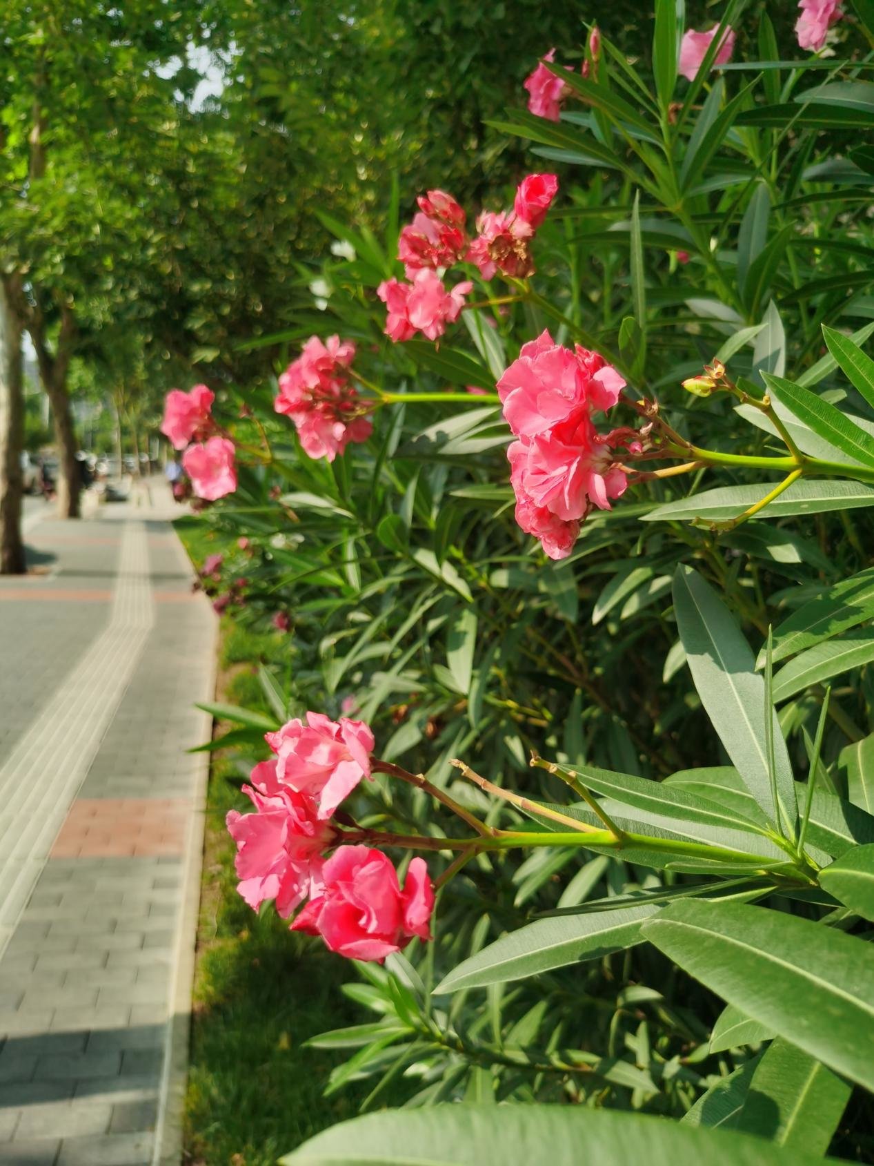近日,西安高新区道路两旁、公园墙角处的夹竹桃开花了,玫红色的花朵浪漫奔放,白色的花朵清新淡雅,一枝枝一簇簇,相互连成俏丽的花墙扮靓街头。但要注意,夹竹桃汁液有毒,不宜“亲密接触”。
