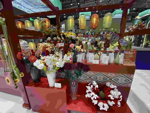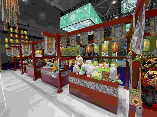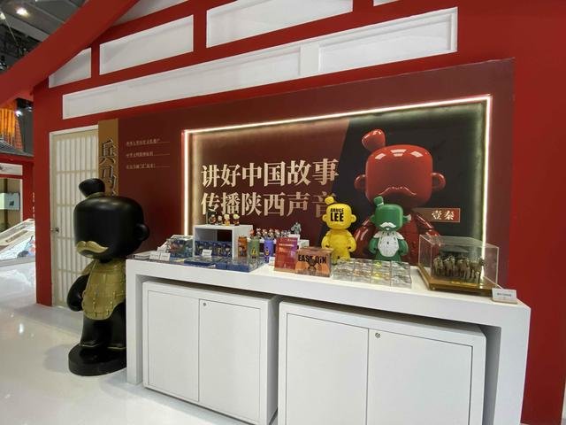 沿着展馆主通道前行,文创产品、非遗手作、陕西美食三个消费体验板块内容格外受观众喜爱。兵马俑文创、陕茶、耀州瓷、唐风文创4个主题的文创场景化展示区,寓情于景、沉浸式展销文创产品。在明星IP文创对面的伞车和联排车架位置,分别集合了工艺品、日用品、玩具、印刷品、非遗和美食等众多品类的文创产品。