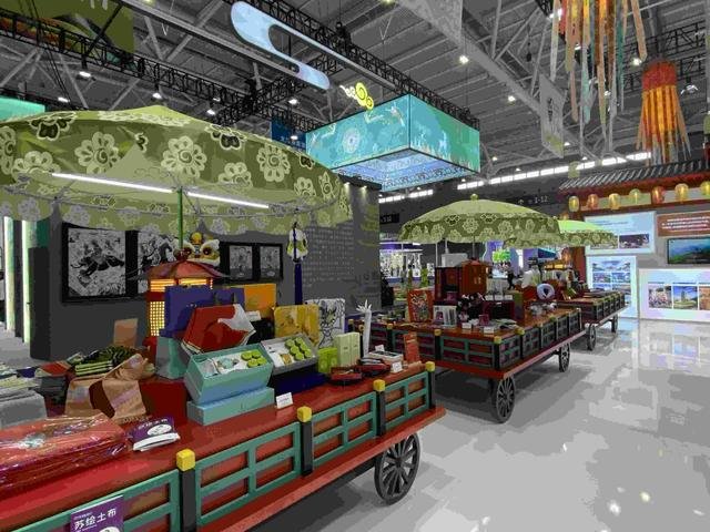 此次,陕西馆将“长安十二时辰”搬到展会现场,以LED开合大屏上黄帝陵、兵马俑、延安宝塔、秦岭、华山等中华文明、中国革命、中华地理的精神标识和自然标识及生态文化标识等“文化标识”IP内容展示,配合开市仪式表演,打造出唐长安街“开市”“闭市”的场景。