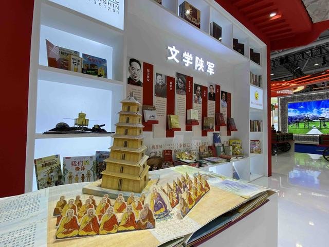 特别值得一提的是,在展馆的中心位置设置的文学陕军、长安画派、西部影视、陕西戏剧陕西文化四大品牌展示区域。以LED大屏展示的西部影视和以大型镜面多媒体墙形式呈现的陕西戏剧,形成了双面多媒体互动。文学陕军与长安画派以艺术造型结构、结合代表作品内容进行了综合展示。荣信教育立体书、新华出版书籍及其他出版物的展示与四大文化品牌共同形成一个主题造景大空间。