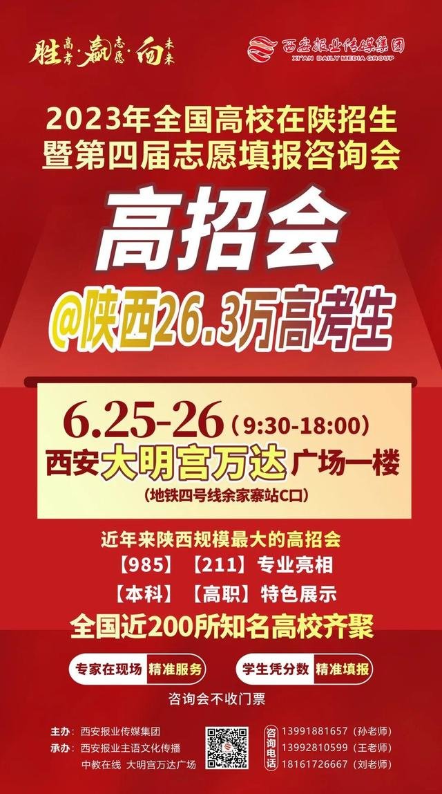同时,为帮助更多的高考生提前与高校进行交流,西安报业传媒集团也将组织“高校招办主任访谈”新媒体访谈活动,邀请各高校招办主任就今年招生政策、专业特色、就业情况等进行解读,请各位考生、家长密切关注。