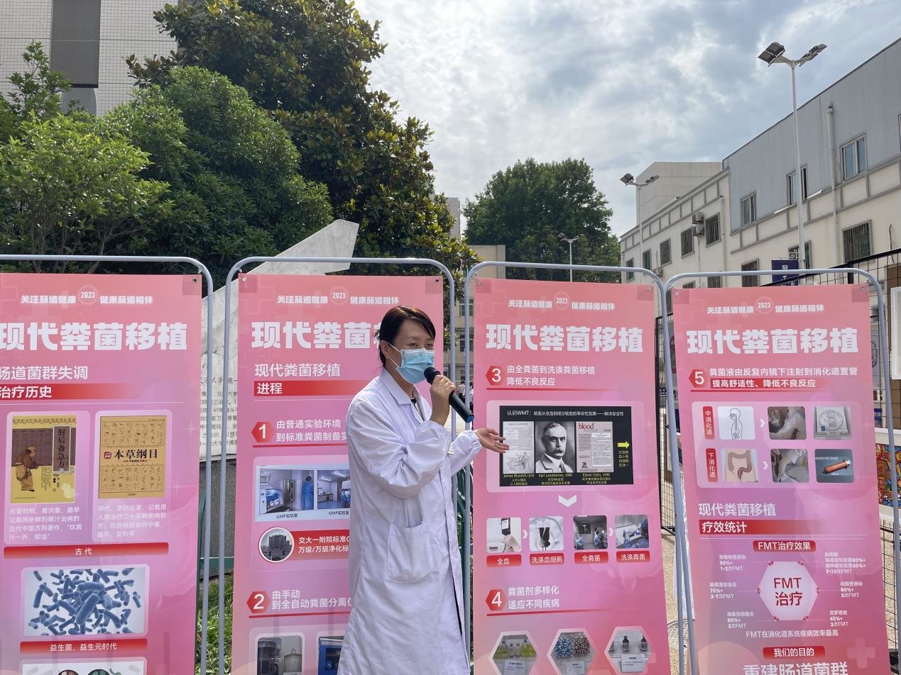 活动现场消化内科刘亚萍博士进行了《现代粪菌移植技术》的科普宣讲。介绍了肠道菌群失调会引发的相关疾病,追溯了肠道菌群失调的治疗历史,向现场的听众科普了现代粪菌移植技术的原理和优势。通过详细生动的讲解让人们更加了解这项技术。