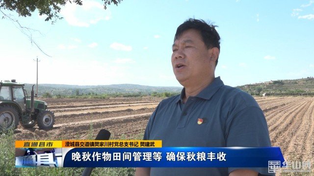 澄城县交道镇樊家川村党总支书记 樊建武:“村上根据当地气候、土地等特点,和农技中心对接提前选好玉米品种,提供玉米高产栽培技术等服务,指导群众搞好农业结构调整、晚秋作物田间管理等,确保秋粮丰收。”