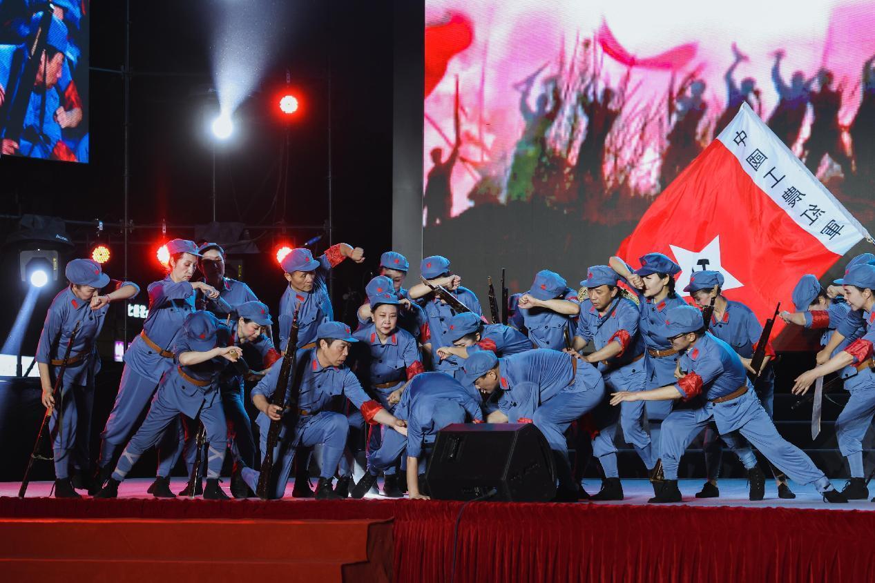 情景表演《庄严的宣誓》拉开了活动的序幕,歌曲《山路十八弯》《船工号子》唱出了昂扬向上的旋律,鼓舞群众争做新时代的赶超者。《永做道德人》《春天的芭蕾》《创汇儿女心向党》《西部放歌》《欢欣鼓舞》《和谐大家园》等各类节目轮番上演,抒发出对党的忠诚。赞颂中国共产党人坚定信仰和牢记民族复兴、人民幸福使命担当的百年历程,让许多在红色经典中长大观众有种亲切感,更让青年一代的观众感受到了中国红色经典的魅力。