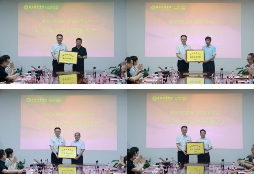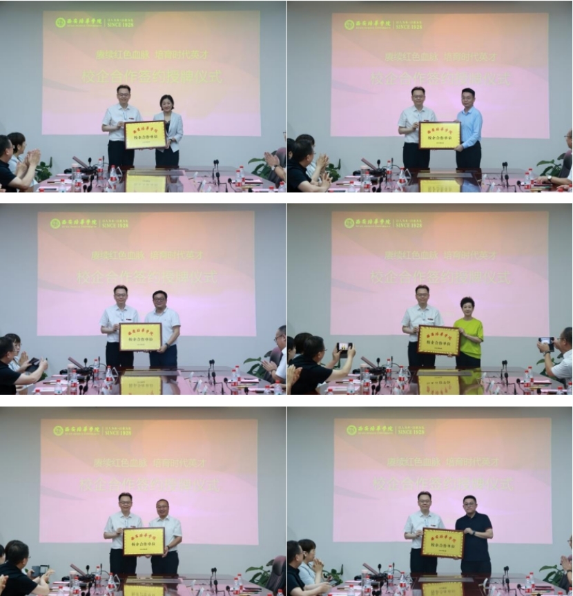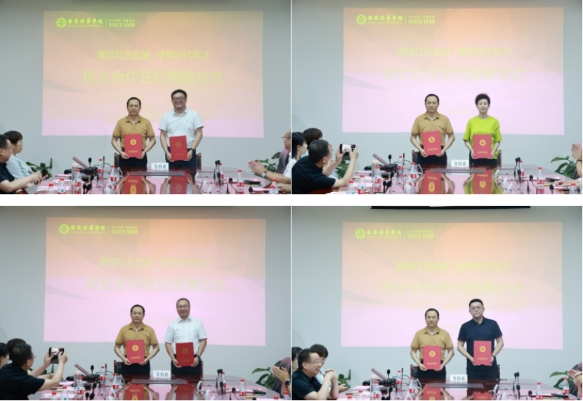 为进一步巩固我校办学育人成效,拓宽学生实习就业渠道,不断深化产教融合校企合作,6月28日上午,学校举办以“赓续红色血脉 培育时代英才”为主题的校企合作签约授牌仪式。西安四腾企业集团公司等10家单位领导,学校理事长姜波等校领导和相关职能部门、二级学院领导参加了本次签约授牌仪式。