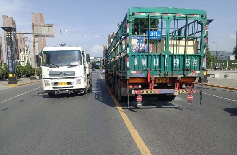 看到危险消除后,挂车司机心中十分感激,双手握拳,一直点头致谢,嘴里重复着“万分感谢!万分感谢!”“快去修车吧!”雷飞师傅叮嘱挂车司机后,驾驶洒水车重新投入到作业中。