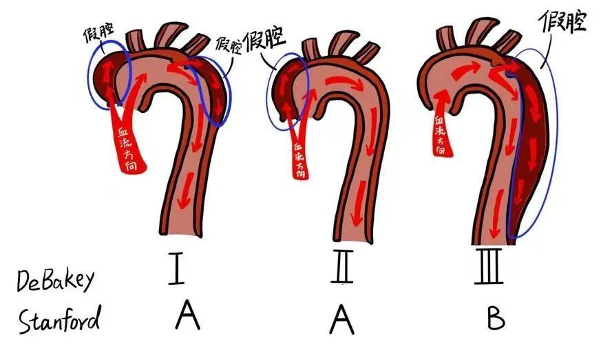 I型:破口位于主动脉瓣上5厘米内,近端累及主动脉瓣,远端累及主动脉弓、降主动脉、腹主动脉,甚至达髂动脉。