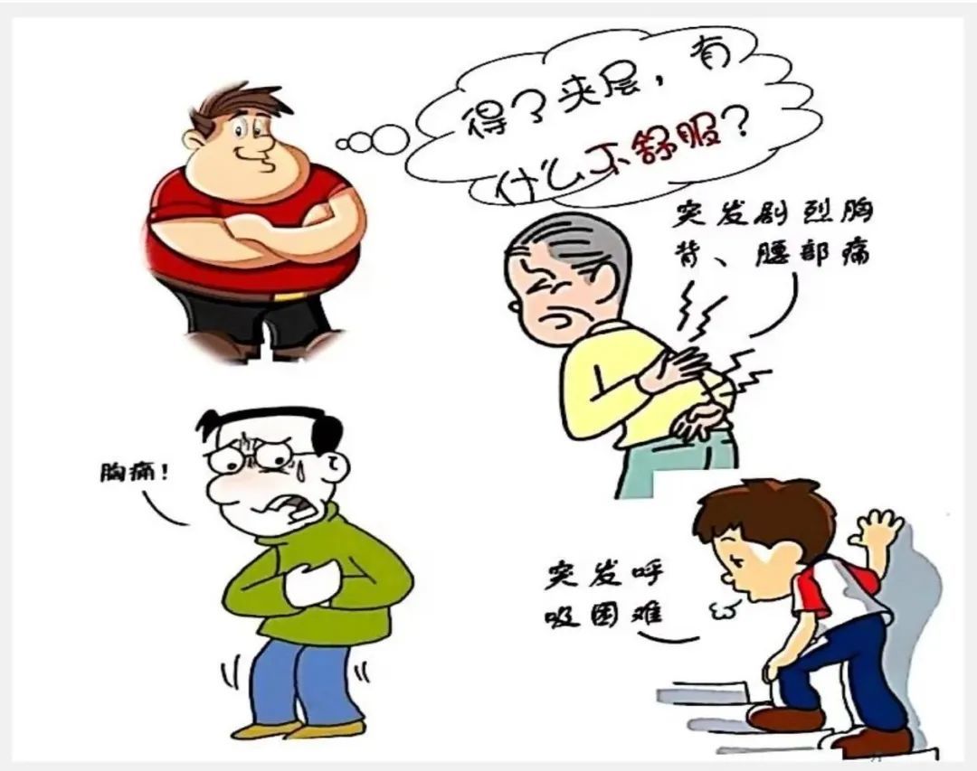 1.疼痛 : 大多数患者突发胸背部疼痛,剧烈难以忍受,呈刀割或撕裂样。