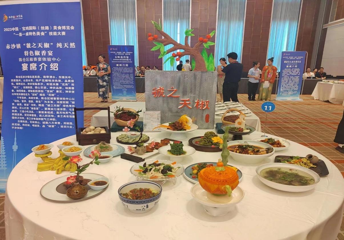 为进一步提升赤沙“虢之天椒”花椒有机品牌影响力,做大做强花椒产业链条,7月17日,赤沙镇“虢之天椒”纯天然特色椒香宴积极参加了2023中国-宝鸡国际美食博览会“一县一桌特色美食”技能大赛。