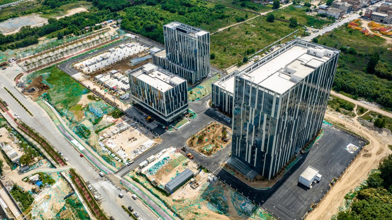 来到位于高新区云水六路以西、天谷六路以北的华勤丝路总部项目,现场多栋楼宇正在进行装修、验收等工作。该项目计划9月底前投用,未来从业人数将达约5000人,预计创造销售收入约12亿。
