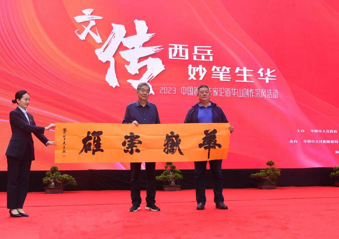 陕西省作协副主席、西安市作协主席吴克敬先生为华山景区赠送了书法作品;华山管委会副主任苗席俊代表华山景区向出席此次活动的各位嘉宾代表赠送了华阴文创产品《华山诗集》。