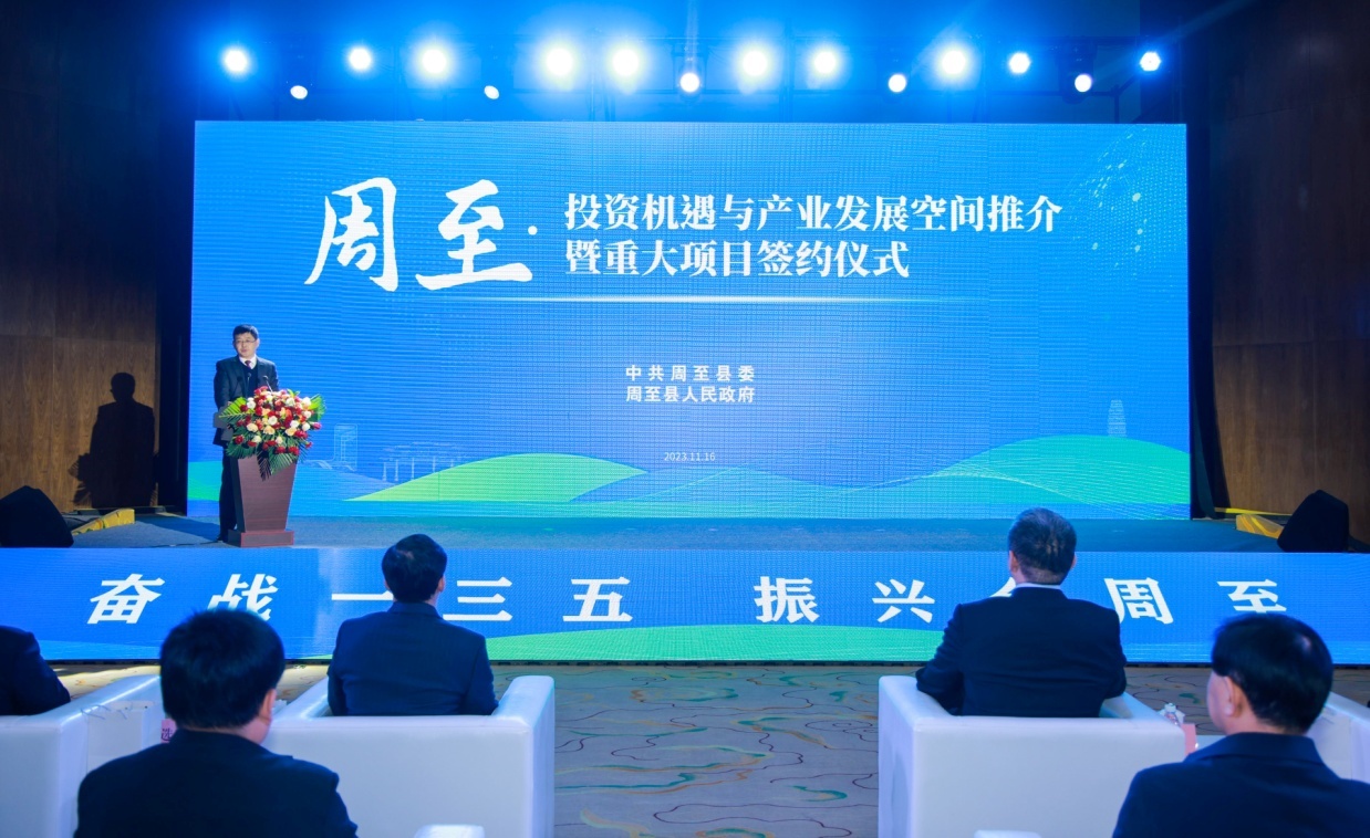 推介会上,县委书记闻其伟代表县级四大班子对参加签约仪式的各位领导和全国各地的客商、企业家代表表示欢迎和感谢。他在致辞中讲到,周至县作为西安市最大的生态发展区,正在成为开放合作、绿色发展的大舞台。今日之周至,拥“天时”之机,坚持生态立县、产业强县、开放活县,走生态产业化、产业生态化的绿色发展之路,产业的蓬勃发展为县域经济高质量发展注入了强劲动能,是特色鲜明的产业之城;今日之周至,占“地利”之便,山水人文鼎盛、自然风光秀美、交通优势显著,金周大地处处彰显新生和希望,有生态、有产业、有生活的和美周至画卷正在徐徐展开,是资源富集的希望之城;今日之周至,承“人和”之美,生态底色更加靓丽,城乡面貌日新月异,人心思干蔚然成风,干部群众渴望家乡迅猛崛起、跨越赶超的愿望更加迫切,是团结实干的宜业之城。县委、县政府将始终秉承重商、亲商、安商、富商理念,以最佳的环境集聚最优的资源,以最大的诚意携手最好的伙伴,带领全县人民以“守正创新、勇毅笃行、有情有义、开放包容”的奋进姿态,全力打造“说到做到、快捷高效”的一流营商环境,全力提供“有呼必到、随叫随到”的优质服务体验,全力营造“来到黑河畔、就是周至人”的温馨干事氛围,让各位企业家朋友投资顺心、发展放心、生活舒心。