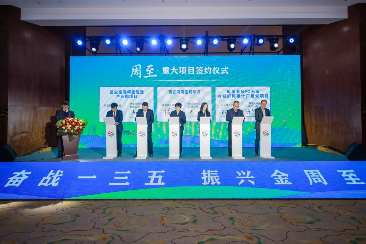 在第七届丝绸之路国际博览会暨中国东西部合作与投资贸易洽谈会召开之际,11月16日,中共周至县委、县人民政府在楼观印象酒店举办第七届丝博会周至县系列活动——周至县投资机遇与产业发展空间推介暨重大项目签约仪式,全方位宣传推介县域经济社会发展面貌和投资环境,促进政企合作,提升招商实效,助力县域经济高质量发展。活动现场签约项目24个,总投资额过百亿元,项目涉及多个领域,重大项目多、规模大,招大引强、招优引新突出,“双招双引”成效显著。