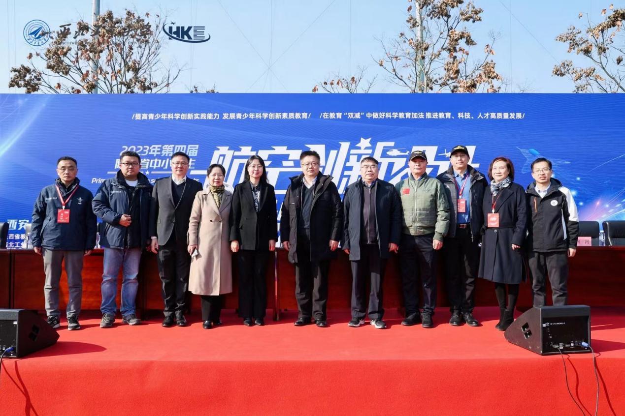 中国航空学会无人机暨微型飞行器分会副主任 孙严冰,中国航空学会科普工作委员会委员、无人机暨微型飞行器分会副总干事、陕西省航空学会副理事长 向河等多位领导莅临西工大星天苑操场,参加“2023年第四届陕西省中小学生航空创新设计挑战赛”开幕仪式。