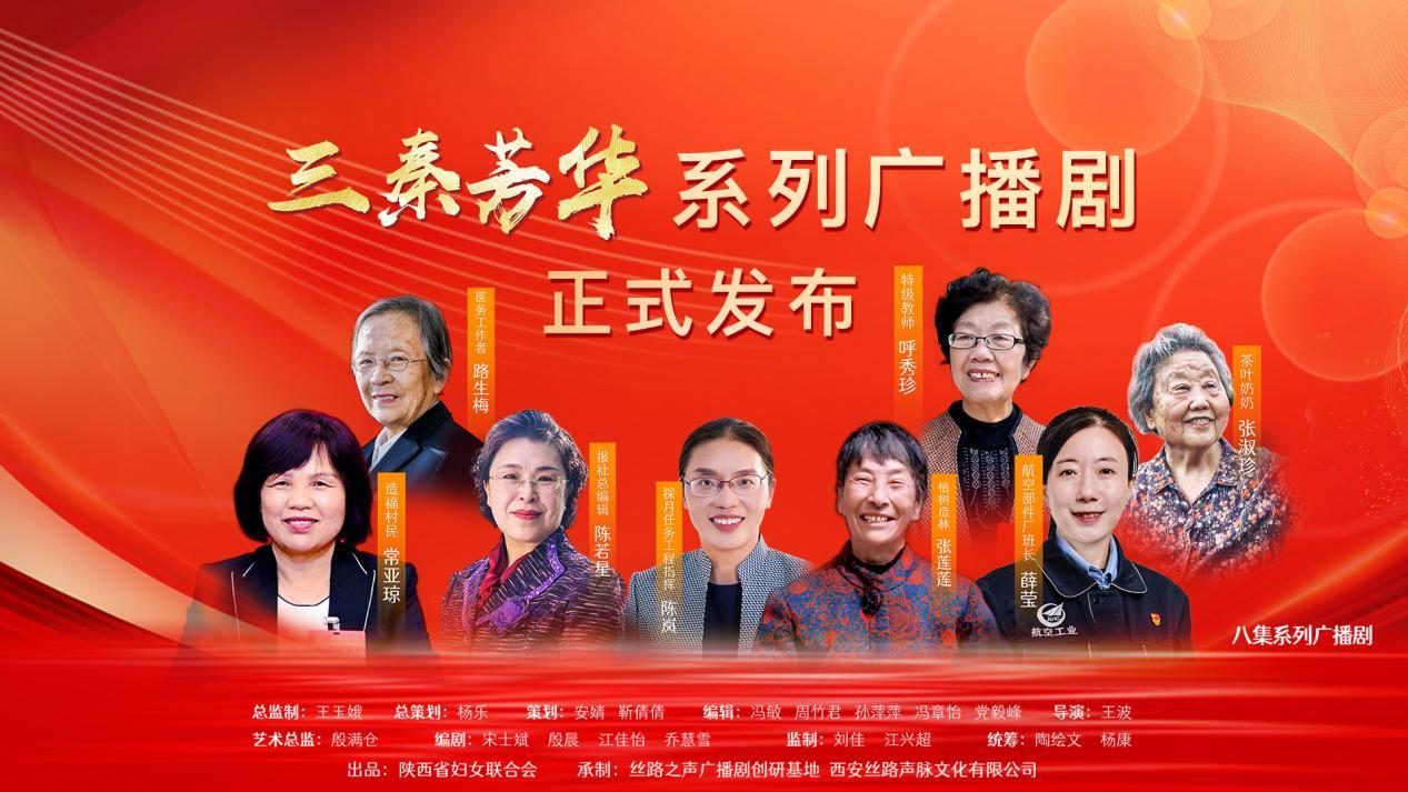 在经济建设的主战场、在乡村振兴的第一线、在创业创新的最前沿、在社会服务的各领域,她们以实干作答,用实绩交卷,靠奋斗出彩,体现着女性的情怀与担当,闪耀着女性的智慧和创造。活动现场,由陕西省妇联出品、西安丝路声脉文化有限公司以“她们”为原型创作的《三秦芳华》系列广播剧正式发布。《三秦芳华》系列广播剧分为八集:《不息的火焰》——陈若星、《守护苍穹》——陈岚、《雷坪塔村种树人》——张莲莲、《佳县梅香》——路生梅、《愿做太阳一缕光》——呼秀珍、《常亚琼的金斧头》——常亚琼、《茶叶奶奶张淑珍》——张淑珍、《最美铆钉》——薛莹,该广播剧旨在用声音艺术梳理和塑造三秦妇女群像,展示陕西女性在经济发展、家庭和谐、社会建设、弘扬文明等方面作出的贡献,通过专业团队的编辑、导演、演播、录制、合成等艺术手段,形成独特的声音艺术产品,在传统和融媒体平台广泛传播,同时制作宣传海报,扫码即可收听、收藏、分享。