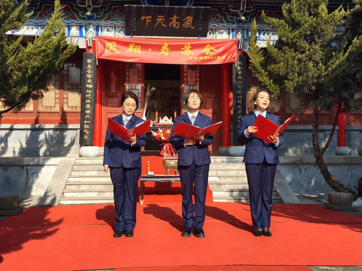 宝鸡市苏轼研究会常务副会长、凤翔东湖管理处主任齐会斌致辞,宝鸡市苏轼文化研究会顾问、凤翔区作家协会主席鲁旭宣读寿辞。
