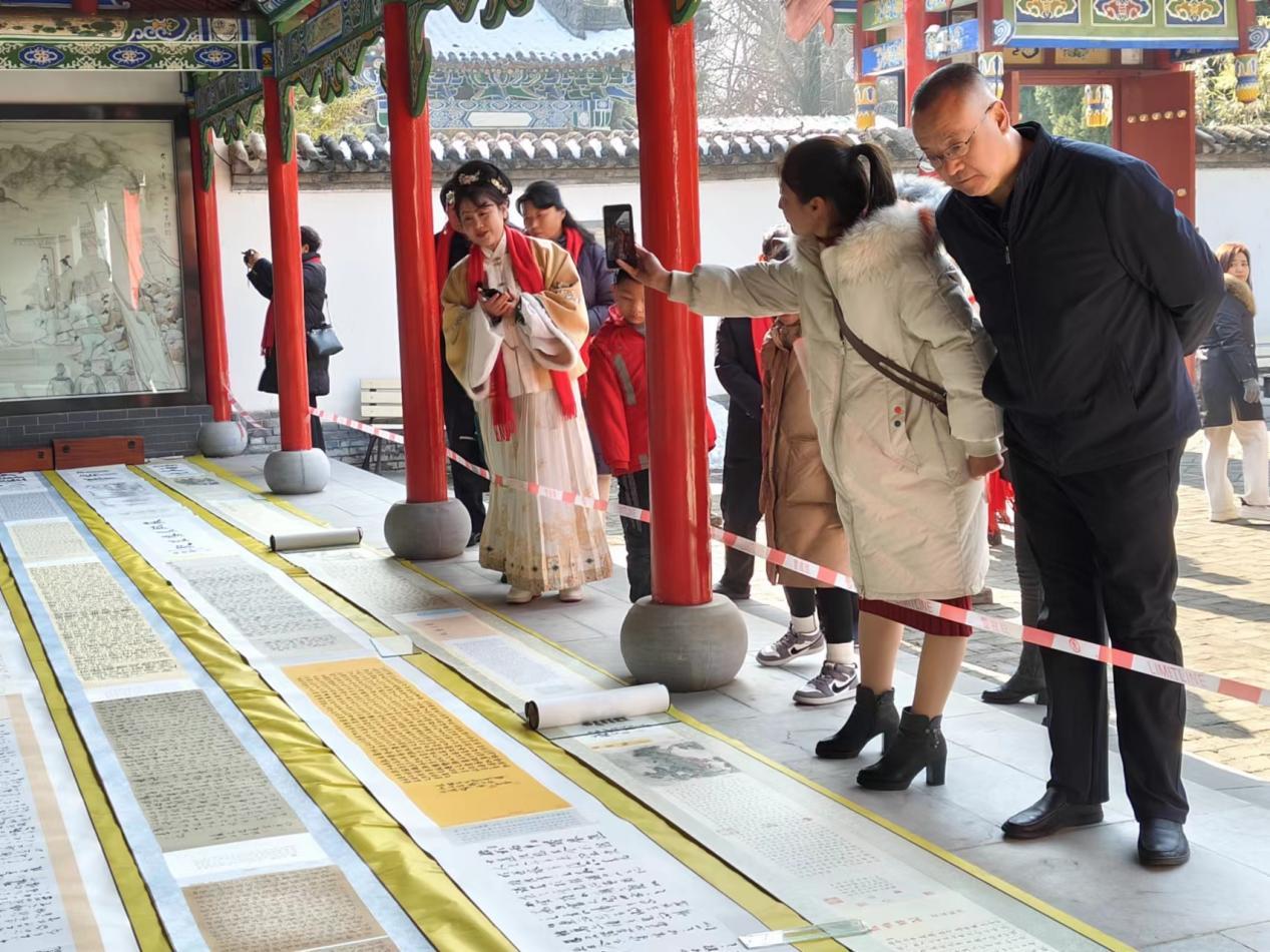 活动现场,参与者众多,活动形式多样,除了隆重的祭拜仪式,穿插了《喜雨亭记》诵读,古筝、吟诵、唱读、茶艺、舞蹈表演、书法长卷展示、东湖园林游览,歌曲《明月几时有》,把观众带入古朴雅致的氛围,幽远的天籁之音中;诗朗诵《仰望苏东坡》把整个活动掀向了高潮,大家仿佛穿越到古代,接受了一次“沉浸式”传统文化的熏陶。
