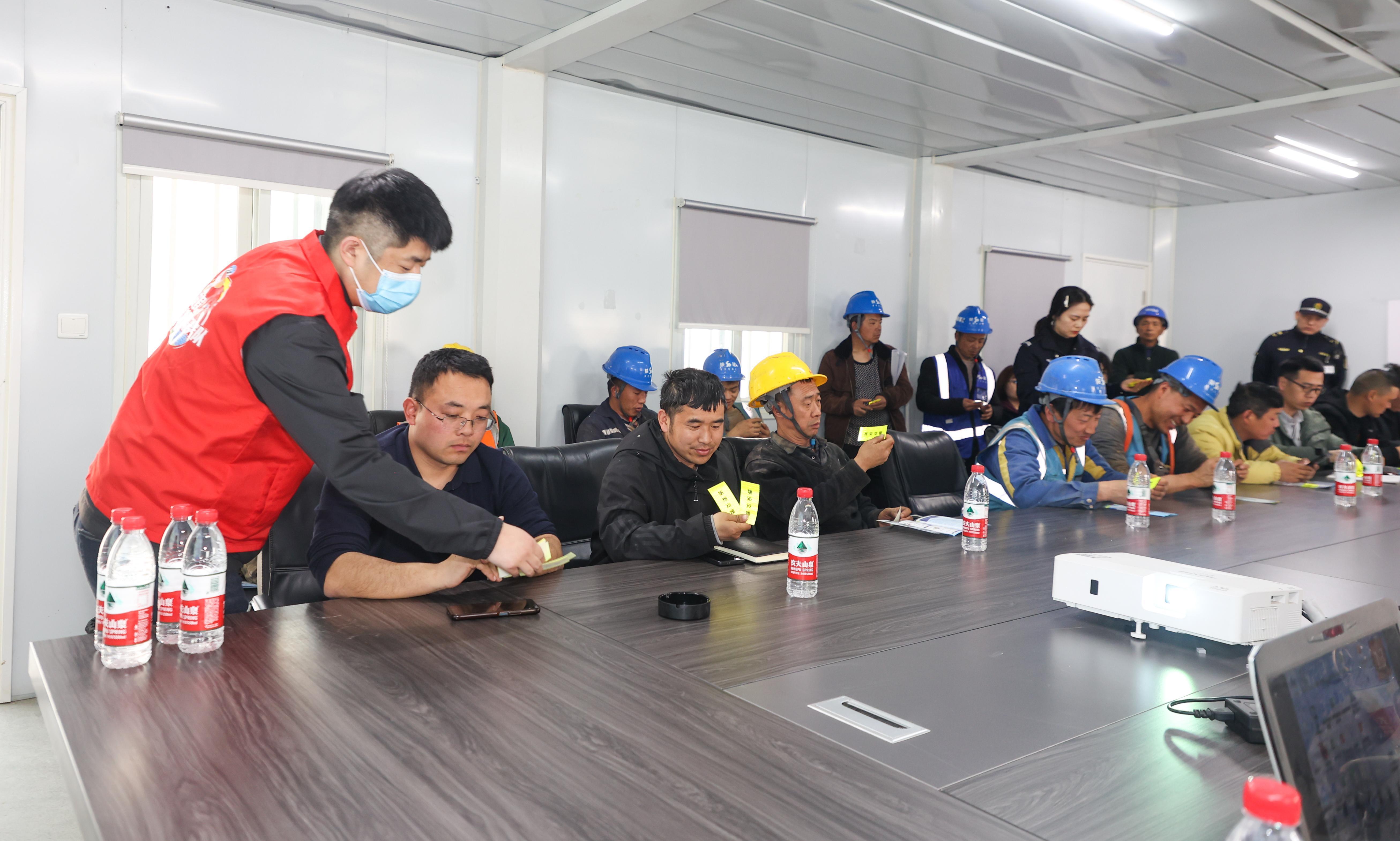 道路千万条,安全第一条。为进一步增强园区建筑工地务工人员的交通安全意识和自我防护意识,提升工人们“知危险、会避险”的能力,3月13日下午,西安浐灞国际港道路交通安全委员会办公室(以下简称“浐灞国际港交安委办”)联合长安号志愿服务队、西安交警港浐大队、西安浐灞国际港城管执法局走进园区一项目工地开展了交通安全宣讲活动,为园区建设铺实“平安路”。