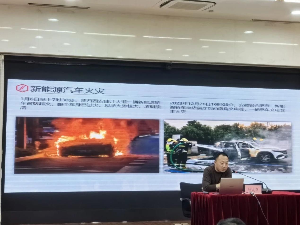 本次培训,特邀请原陕西省公安消防总队工程师杨太卫进行授课。杨工程师以新能源充电设施火灾隐患及处置和户外广告牌匾的火灾隐患及处置为重点,围绕近期发生的典型事故案例,结合城管行业的工作实际,以案例分析为切入点,从新能源电动汽车火灾的最大风险锂电池着火的的特点、如何预防新能源汽车火灾以及锂电池火灾的处置等方面,形象生动的讲解了火灾的预防、灭火的基本方法和原理、灭火过程中的注意事项以及应急逃生自救方法等防火灭火知识。