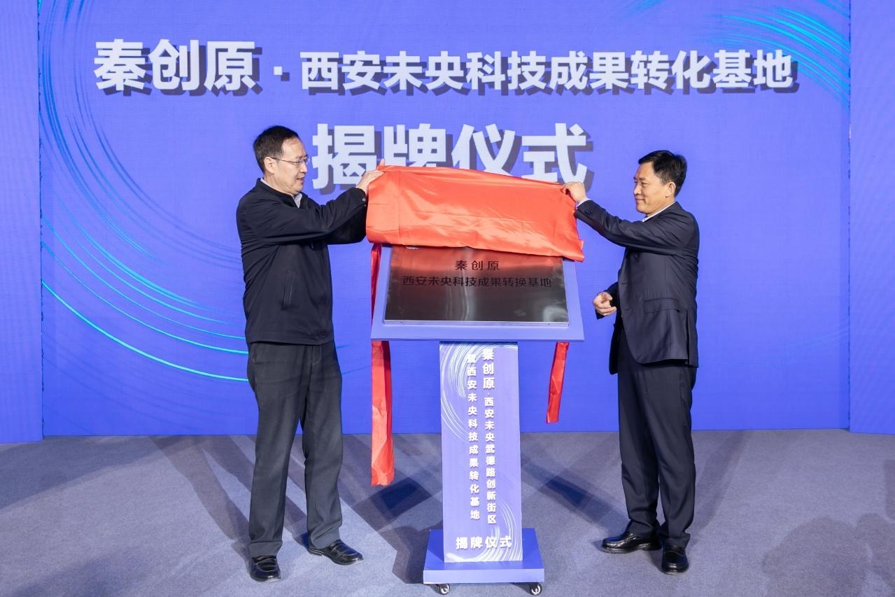 省市区领导共同为“秦创原·西安未央武德路创新街区”、“秦创原·西安未央科技成果转化基地”揭牌,为未央区“秦创原地市协同科创载体秦创原总窗口‘卫星岛’”授牌。