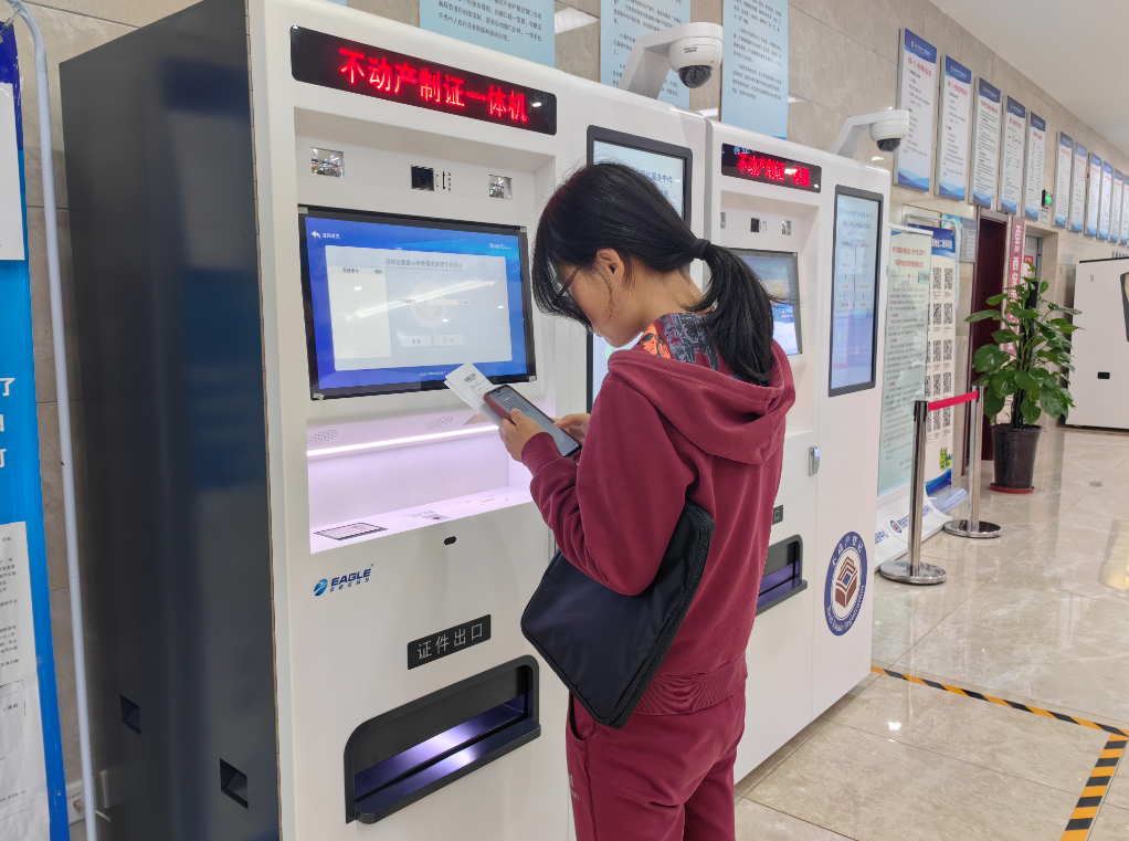 据悉,为进一步优化营商环境, 打通服务群众“最后一公里”,不动产制证一体机近日在西安市不动产登记服务中心正式“上岗”。不动产制证一体机投入使用后,工作人员只需完成受理、审核、登簿工作,登记成果同步上传至制证一体机,实现制证、发证环节“合二为一”,群众在不动产登记办事大厅可根据提示按步骤自助制证、领证。