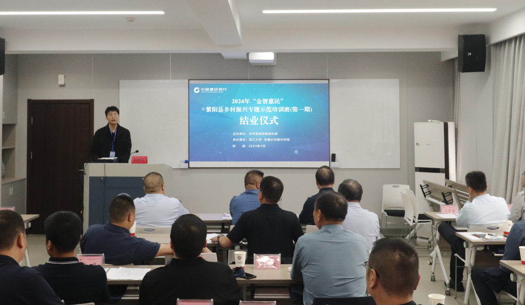 为落实中央农村工作会议和中央一号文件部署要求,以学习运用“千万工程”经验为引领,全面提升基层干部队伍建设和业务工作水平。由紫阳县委组织部、安康乡村振兴空间联合中国建设银行驻安康定点帮扶专班共同组织的紫阳县干部学习“千万工程”经验“金智惠民”培训班于4月8日至12日在浙江大学成功举办。紫阳县委副书记、县政府常务副县长鲁延福,紫阳县委常委、副县长马龙,紫阳县政协党组副书记、副主席张宣铭,紫阳县政协副主席、县交通局局长张锐,浙江大学求是特聘一级教授黄祖辉出席开班仪式,紫阳县有关县处级干部、部分乡镇及部局负责人共50人参加培训。