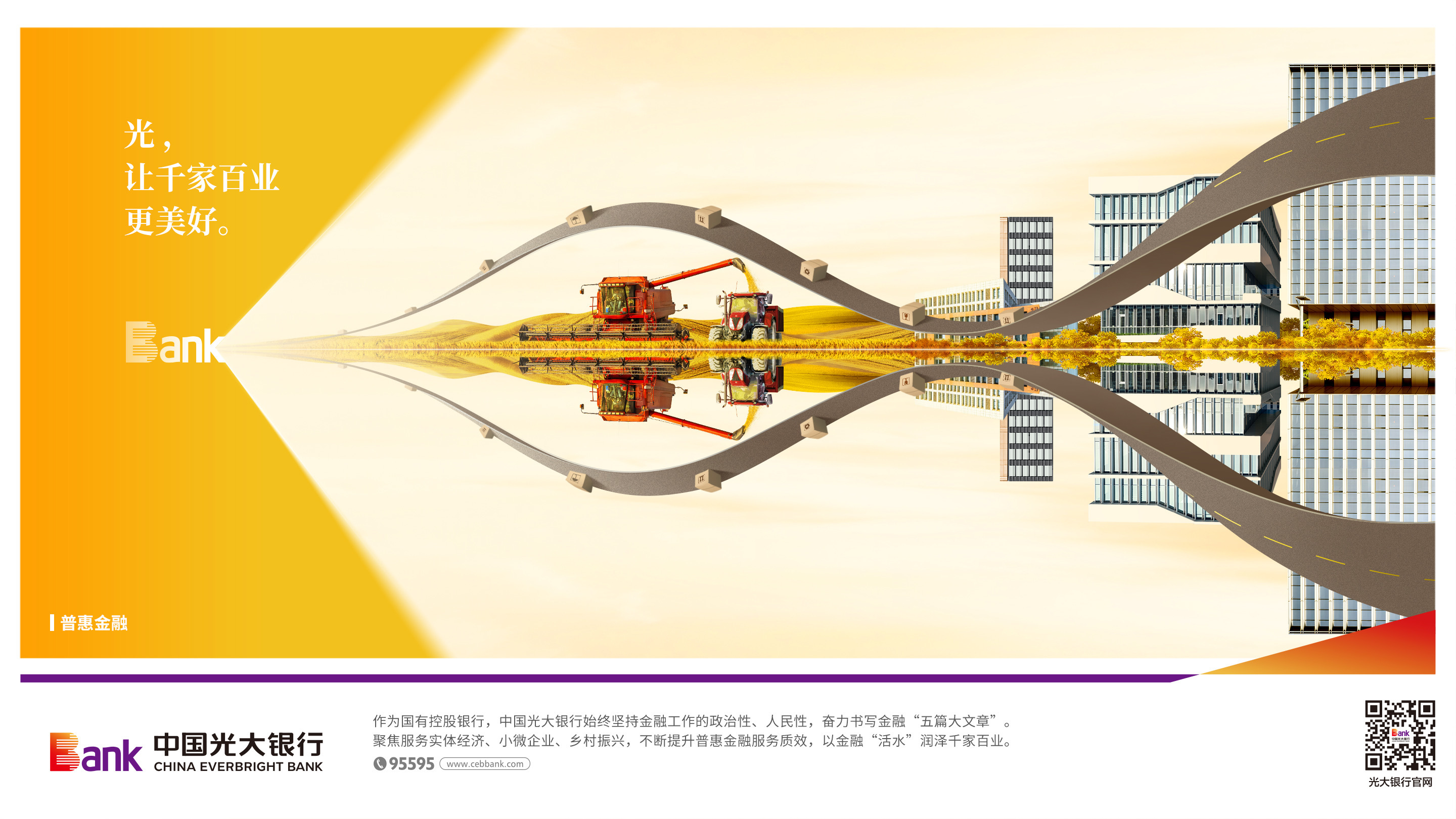中国光大银行从发展高光与自然晖光中汲取灵感,以「科技灰」「青山绿」「阳光黄」「晚霞赤」「数字蓝」的丰富色彩赋予「光大之光」,奋力书写「科技金融、绿色金融、普惠金融、养老金融、数字金融」五篇大文章,为实现建设金融强国的美好蓝图增光添彩。