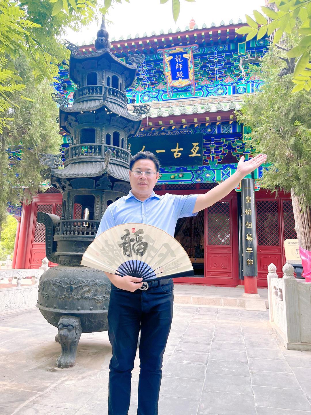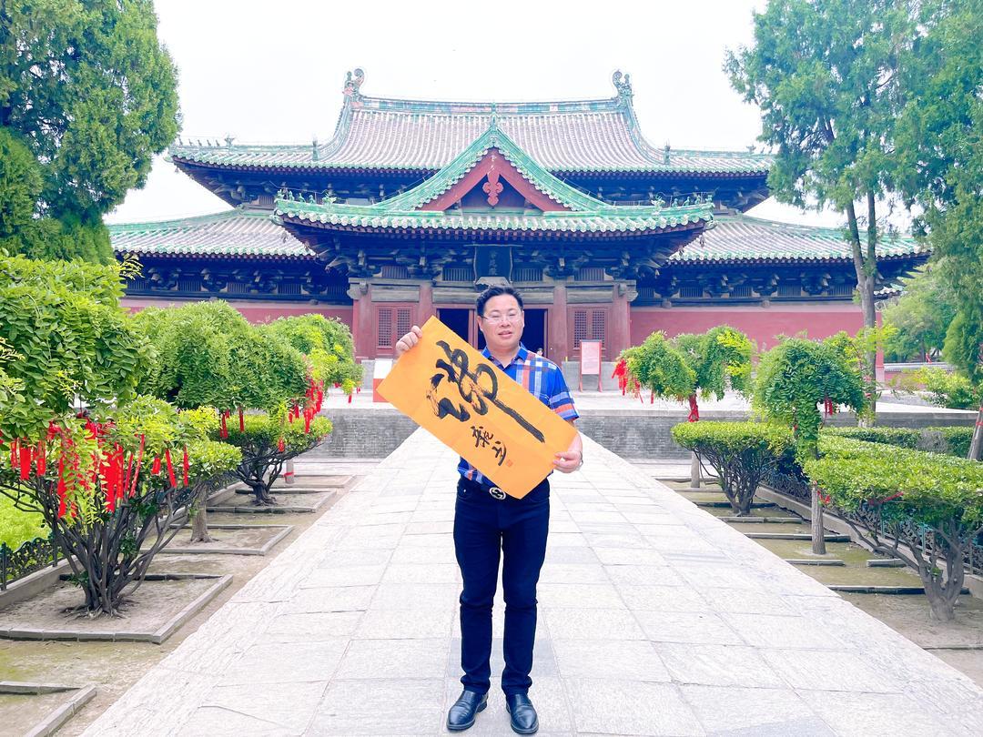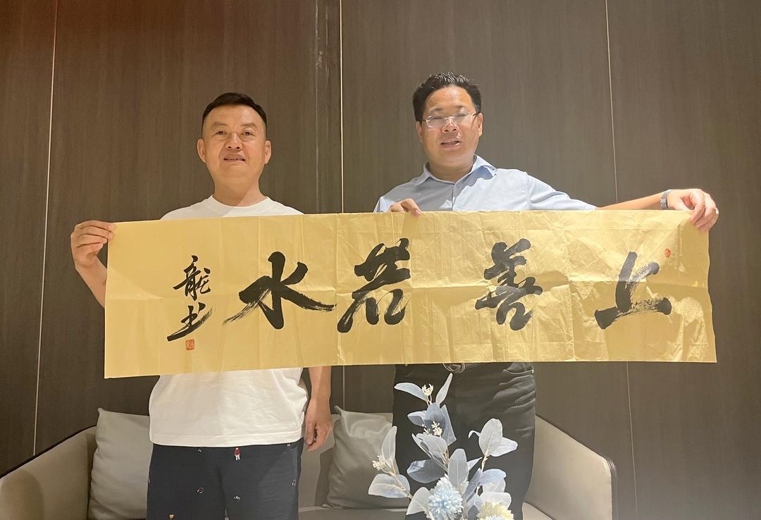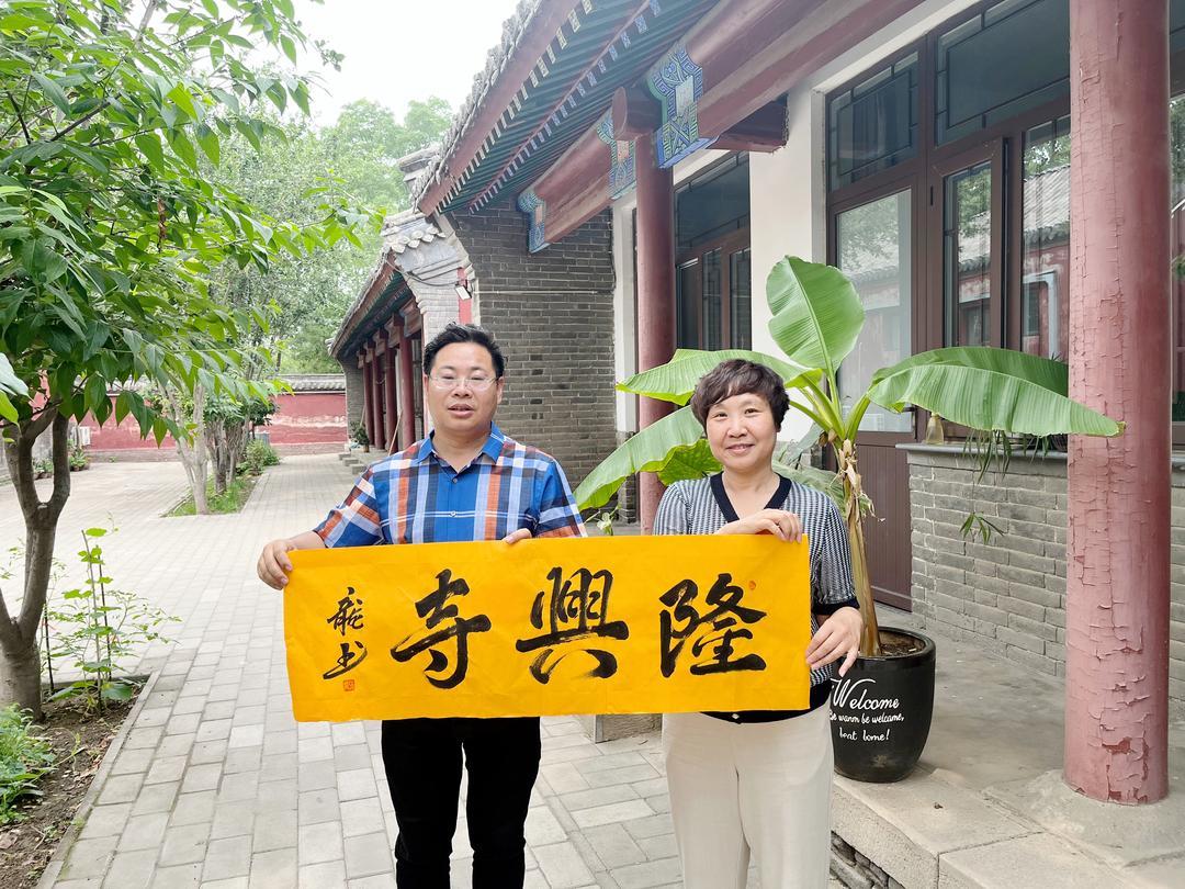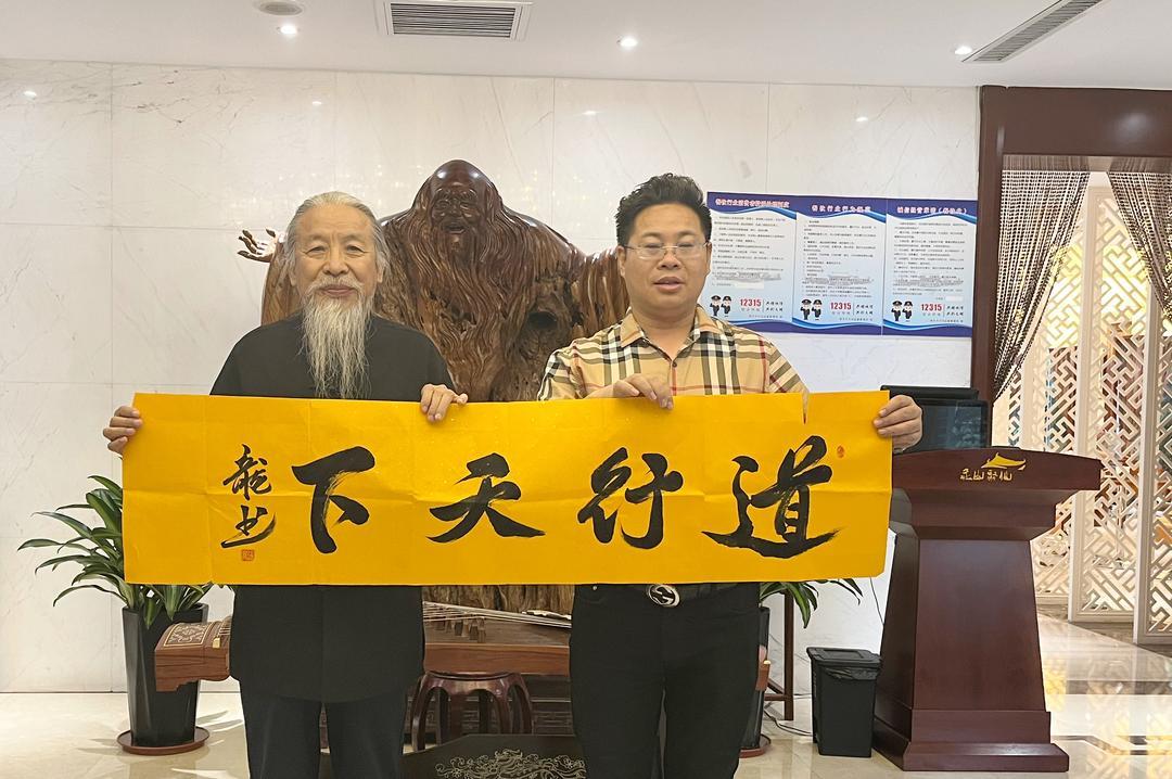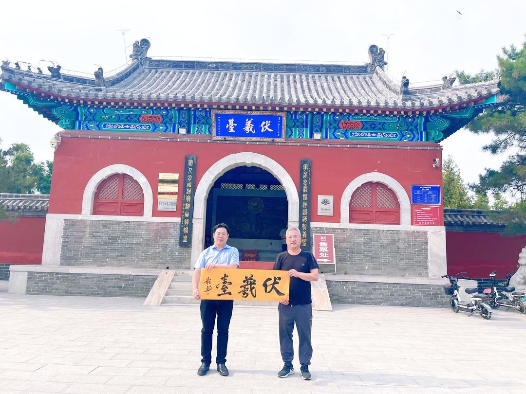 石家庄新乐市文物管理所所长温朋远接收张龙题字书法作品伏羲台